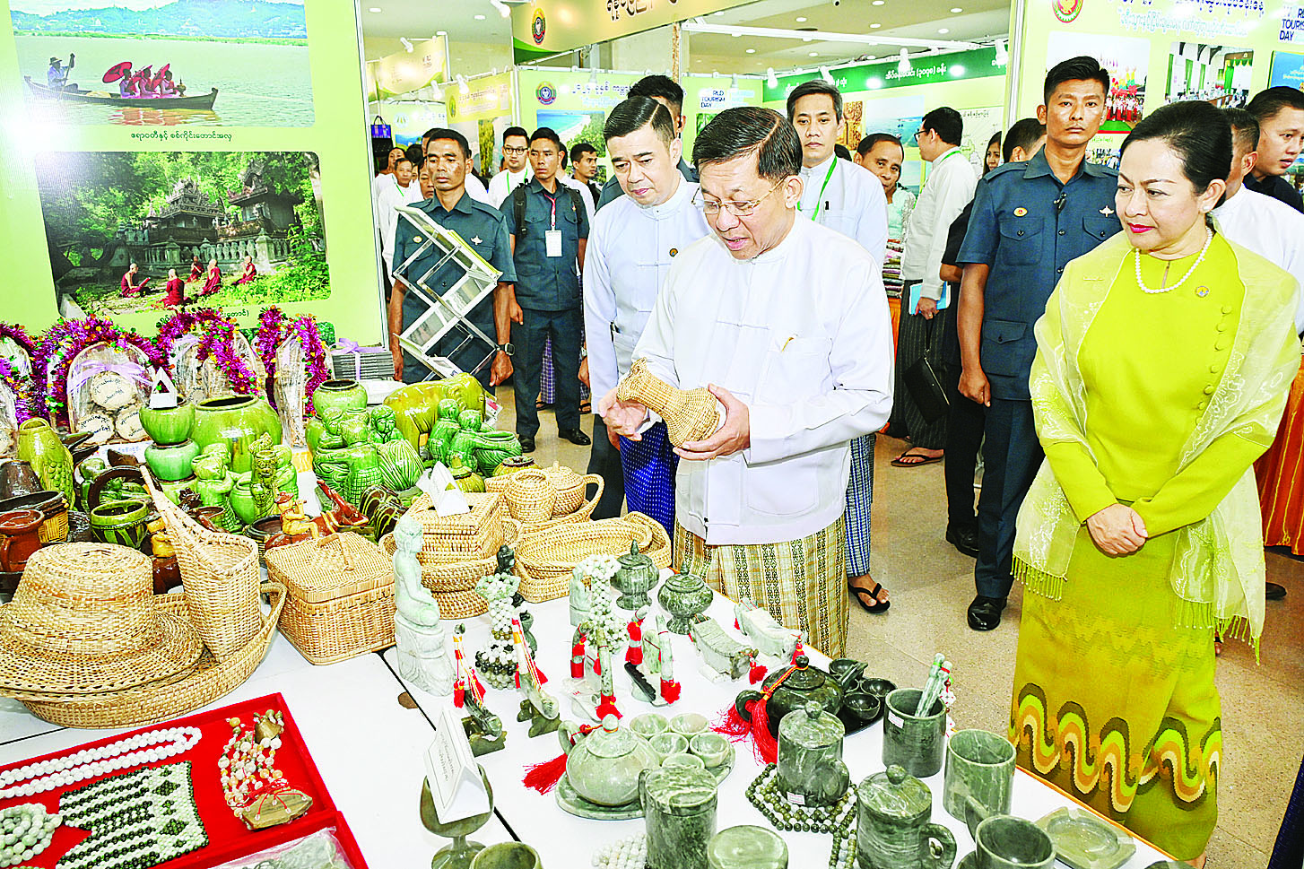 ထို့နောက် နိုင်ငံတော်စီမံအုပ်ချုပ်ရေးကောင်စီဥက္ကဋ္ဌ နိုင်ငံတော်ဝန်ကြီးချုပ်နှင့် အခမ်းအနားတက်ရောက်လာကြသူများသည် ၂၀၂၄ ခုနှစ်၊ ကမ္ဘာ့ခရီးသွားလုပ်ငန်းနေ့ အထိမ်းအမှတ်အဖြစ် ခင်းကျင်းပြသထားသည့် တိုင်းဒေသကြီးနှင့်ပြည်နယ်များရှိ ခရီးစဉ်ဒေသအလိုက်ပြခန်းများ၊ မြန်မာနိုင်ငံခရီးသွားလုပ်ငန်းအဖွဲ့ချုပ်နှင့် ညီနောင်အသင်းများမှ ပြသထားသည့်ပြခန်းများ၊ ဝန်ကြီးဌာနအလိုက်ပြခန်းများနှင့် အမျိုးသားစည်းလုံးညီညွတ်ရေးနှင့် ငြိမ်းချမ်းရေးဖော်ဆောင်မှုဗဟိုပြခန်းများကို စိတ်ပါဝင်စားစွာဖြင့်လှည့်လည်ကြည့်ရှုခဲ့ကြောင်းသတင်းရရှိသည်။