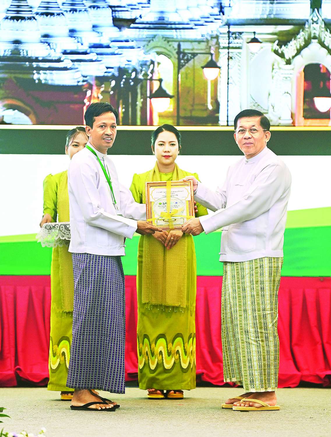 ယင်းနောက် နိုင်ငံတော်စီမံအုပ်ချုပ်ရေးကောင်စီဥက္ကဋ္ဌ နိုင်ငံတော်ဝန်ကြီးချုပ်နှင့် အဖွဲ့ဝင်များသည် ဆုရရှိသူများနှင့်အတူ စုပေါင်းမှတ်တမ်းတင်ဓာတ်ပုံရိုက်ကြသည်။