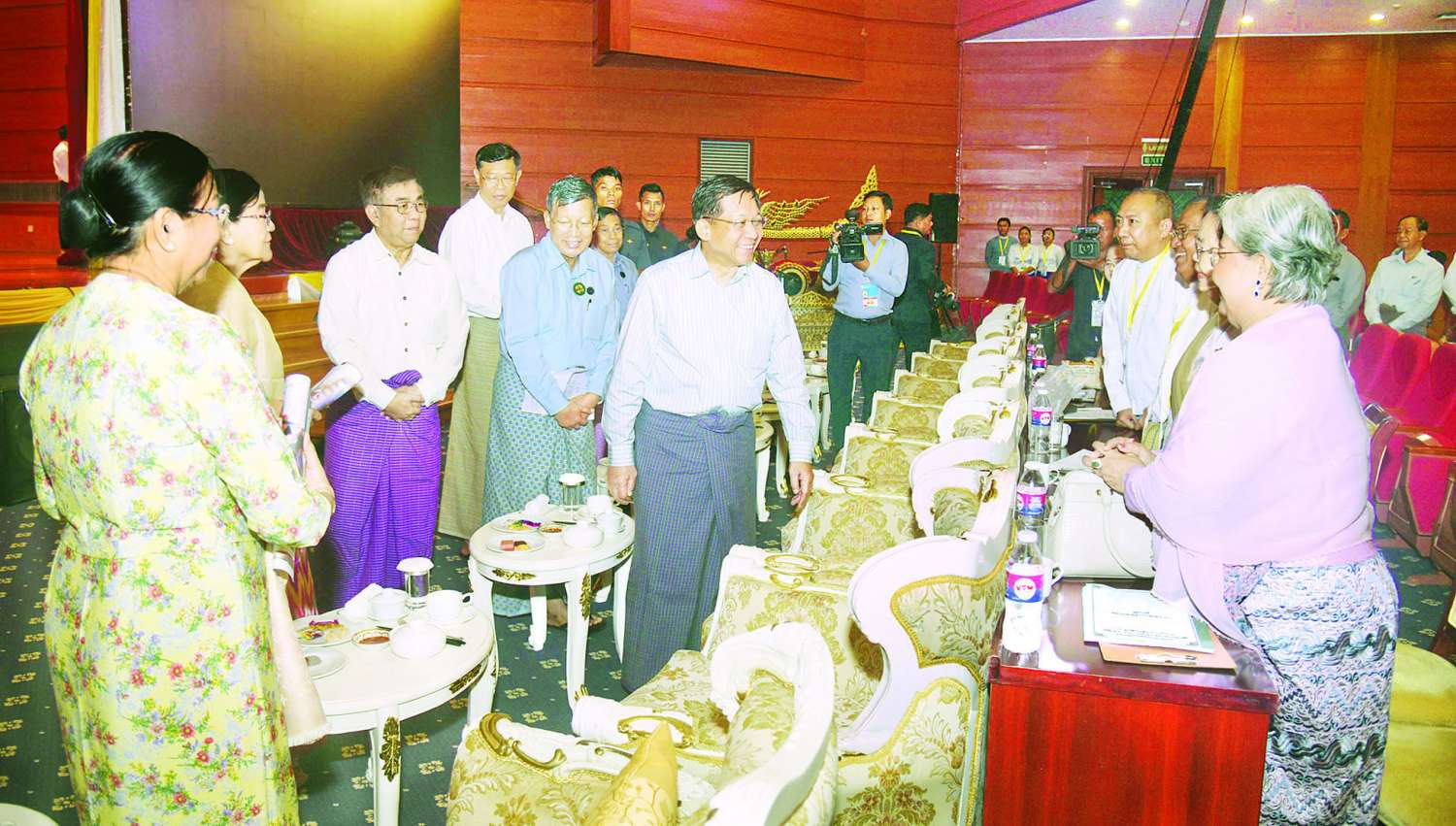 ယှဉ်ပြိုင်မှုအပြီးတွင် နိုင်ငံတော်စီမံအုပ်ချုပ်ရေးကောင်စီဥက္ကဋ္ဌ နိုင်ငံတော်ဝန်ကြီးချုပ်နှင့်ဇနီးတို့သည် ပြိုင်ပွဲအဆင့်အလိုက် အကဲဖြတ်ဆောင်ရွက်ပေးနေသည့် အကဲဖြတ်ပညာရှင်များနှင့် ပြိုင်ပွဲဝင်များအား ရင်းရင်းနှီးနှီးနှုတ်ဆက်သည်။