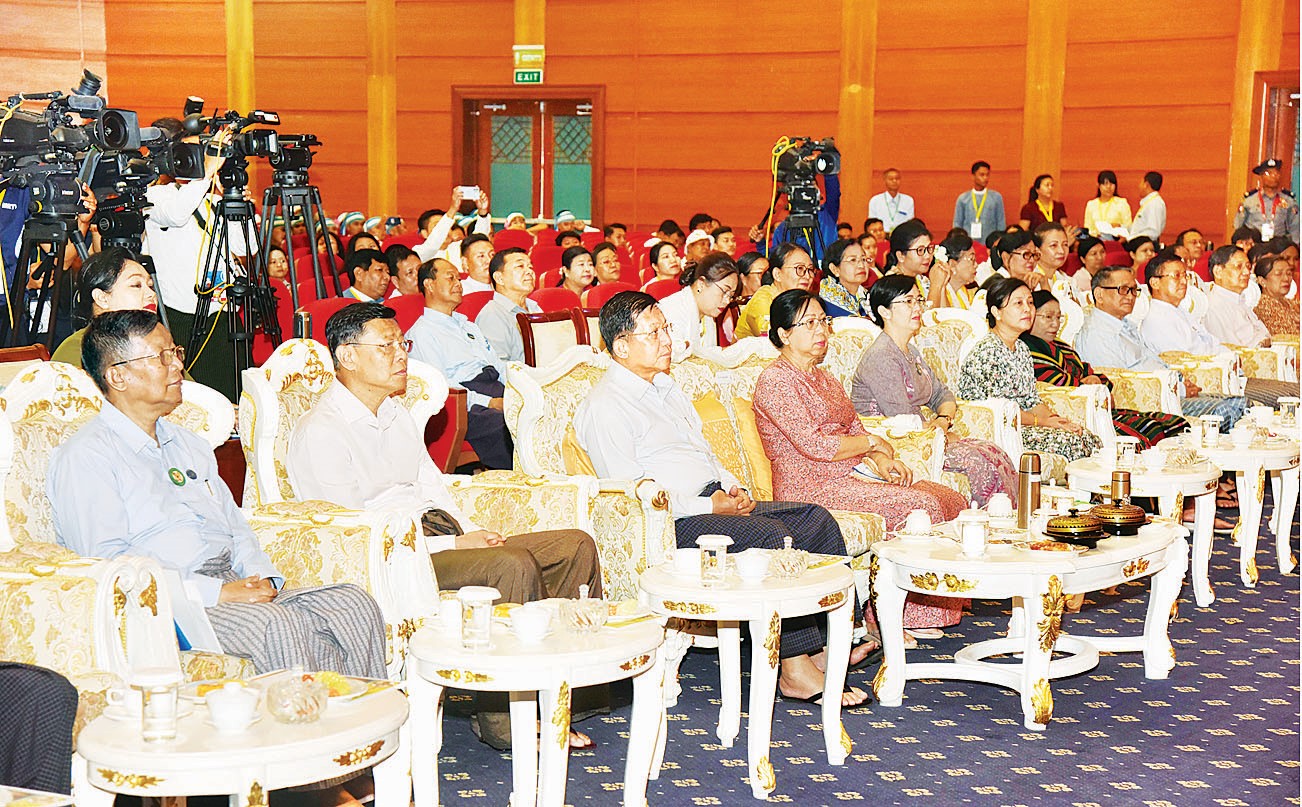 ဦးစွာ နိုင်ငံတော်စီမံအုပ်ချုပ်ရေးကောင်စီဥက္ကဋ္ဌ နိုင်ငံတော်ဝန်ကြီးချုပ်နှင့် ဇနီး၊ အဖွဲ့ဝင်များသည် Plenary Hall ၌ ကျင်းပလျက်ရှိသည့် တိုင်းရင်းသားရိုးရာ/ ကျေးလက်ရိုးရာ အလွတ်တန်းအဆင့်အကပြိုင်ပွဲတွင် တိုင်းဒေသကြီးနှင့်ပြည်နယ်အလိုက် ရိုးရာအကအဖွဲ့များက တိုင်းရင်းသားနှင့် ကျေးလက်ရိုးရာဓလေ့ စရိုက်များ ပေါ်လွင်စေသည့် အကအလှများဖြင့် အဖွဲ့လိုက် အချိုးအဆစ်ညီညာပြေပြစ် ရသမြောက်စွာ ကပြယှဉ်ပြိုင်နေမှုများကို အားပေးကြည့်ရှုကြသည်။