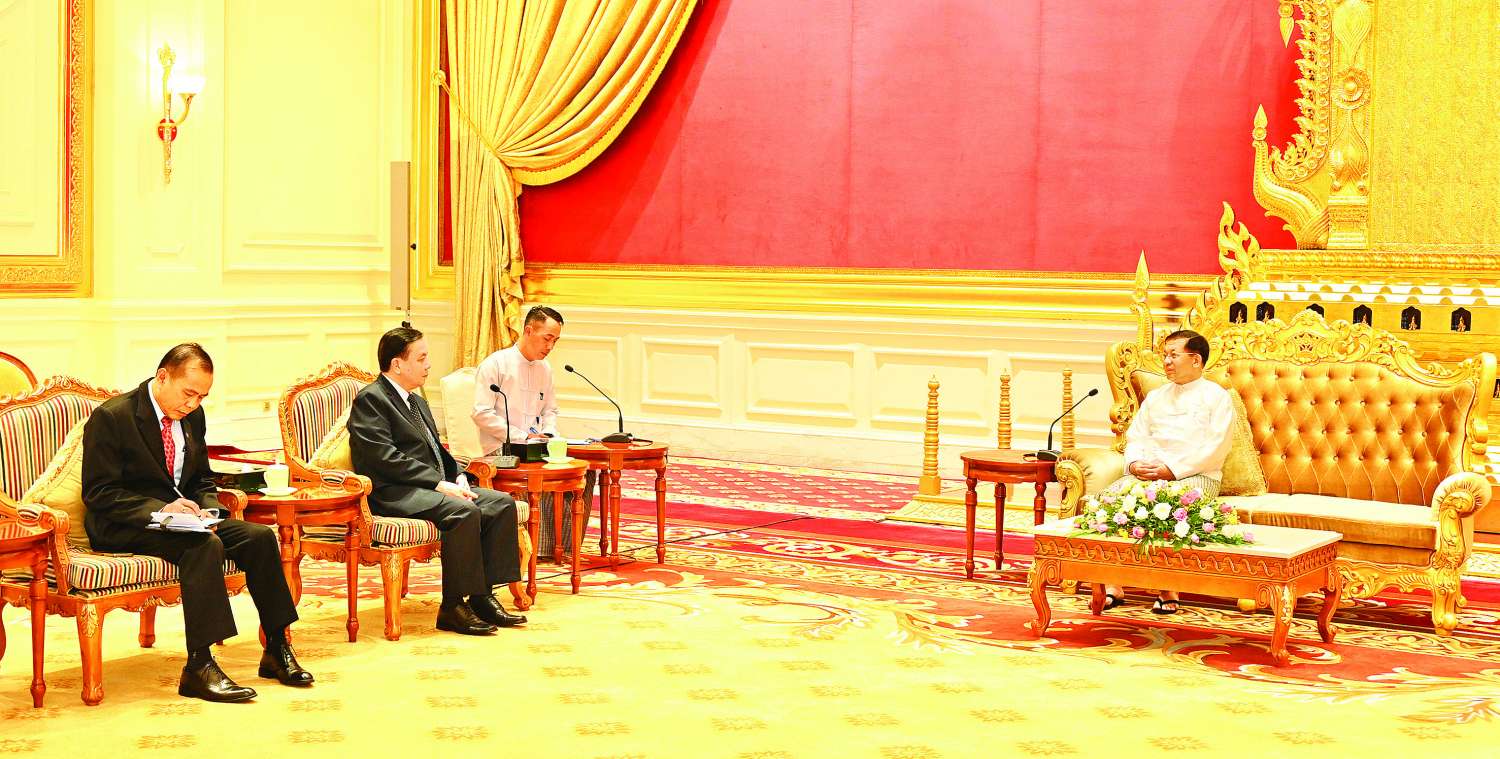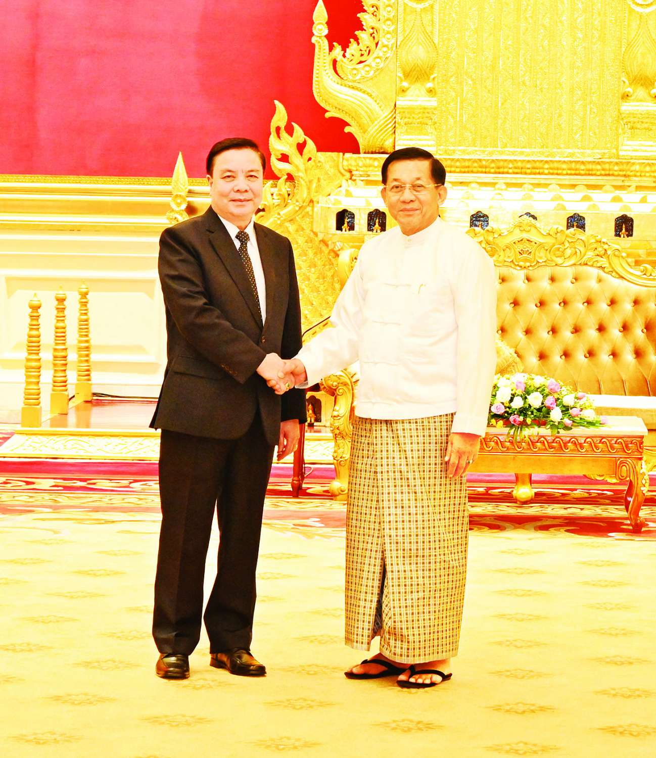 နိုင်ငံတော်စီမံအုပ်ချုပ်ရေးကောင်စီဥက္ကဋ္ဌ နိုင်ငံတော်ဝန်ကြီးချုပ် ဗိုလ်ချုပ်မှူးကြီး မင်းအောင်လှိုင် မြန်မာနိုင်ငံဆိုင်ရာ လာအိုနိုင်ငံ သံအမတ်ကြီးအား လက်ခံတွေ့ဆုံ