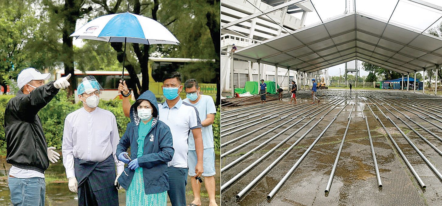 ဧရာဝတီဖောင်ဒေးရှင်းက ကျန်းမာ ရေးနှင့် အားကစားဝန်ကြီးဌာန၏ လိုအပ်ချက်နှင့် ညွှန်ကြားမှု၊ ရန်ကုန် တိုင်းဒေသကြီး ကိုဗစ်-၁၉ ရောဂါ ကာကွယ်ထိန်းချုပ်ကုသရေးအတွက် ပေါင်းစပ်ညှိနှိုင်းရေး ကော်မတီ ဒုတိယဥက္ကဋ္ဌပါမောက္ခ ဒေါက်တာ ဇော်ဝေစိုး၏ ကြီးကြပ်မှုတို့ဖြင့် ကိုဗစ်-၁၉ အရေးပေါ်လူနာများကို အနီးကပ် ကြပ်မတ်ကုသပေးနိုင်မည့် Critical Care Unit- ဧရာဝတီစင်တာ ကို သုဝဏ္ဏအားကစားကွင်း၌ တည် ဆောက်လျက်ရှိသည်။