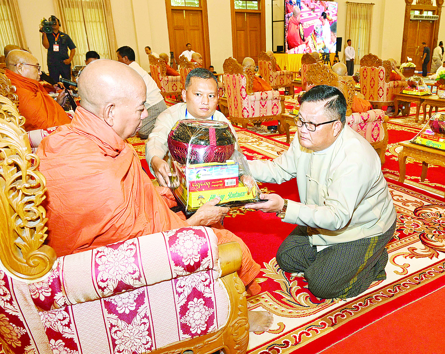 ယင်းနောက် နိုင်ငံတော်စီမံအုပ်ချုပ်ရေးကောင်စီဒုတိယဥက္ကဋ္ဌ ဒုတိယဝန်ကြီးချုပ်နှင့် ဇနီးတို့သည် နိုင်ငံတော်သံဃမဟာနာယကအဖွဲ့ အကျိုးတော်ဆောင် မန္တလေးမြို့၊ မစိုးရိမ်တိုက်သစ် မဟာနာယက၊ ဓမ္မသမိဒ္ဓိကျောင်း ဆရာတော်ကြီးထံ ကထိန်သင်္ကန်းနှင့် လှူဖွယ်ပစ္စည်းများကို ဆက်ကပ်လှူဒါန်းသည်။