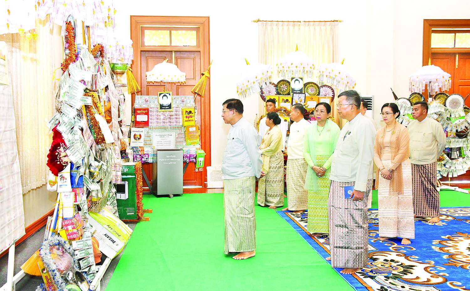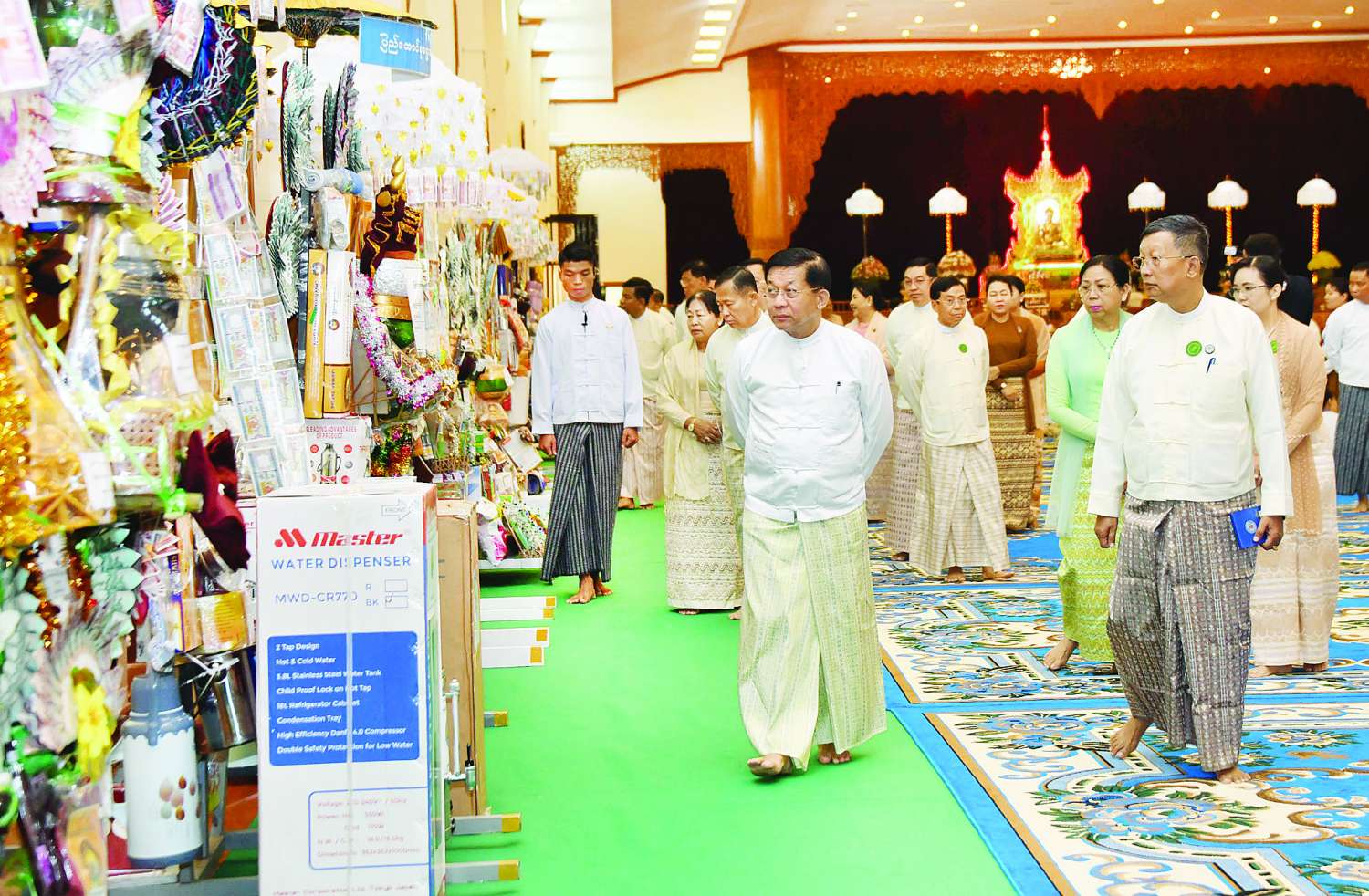 ထို့နောက် နိုင်ငံတော်စီမံအုပ်ချုပ်ရေးကောင်စီဥက္ကဋ္ဌ နိုင်ငံတော်ဝန်ကြီးချုပ်နှင့် အခမ်းအနားတက်ရောက်လာသည့် ဧည့်ပရိသတ်များသည် ကထိန်ခံ နေပြည်တော်၊ ဥတ္တရသီရိမြို့နယ်၊ ဝဇိရာနန္ဒ သုဗောဓာရုံကျောင်းတိုက်သို့ လှူဒါန်းရန် ခင်းကျင်းပြင်ဆင်ထားသည့် ကထိန်လျာသင်္ကန်း၊ လှူဖွယ်ပစ္စည်းများနှင့် ပဒေသာပင်များအား လှည့်လည်ကြည့်ရှုကြသည်။