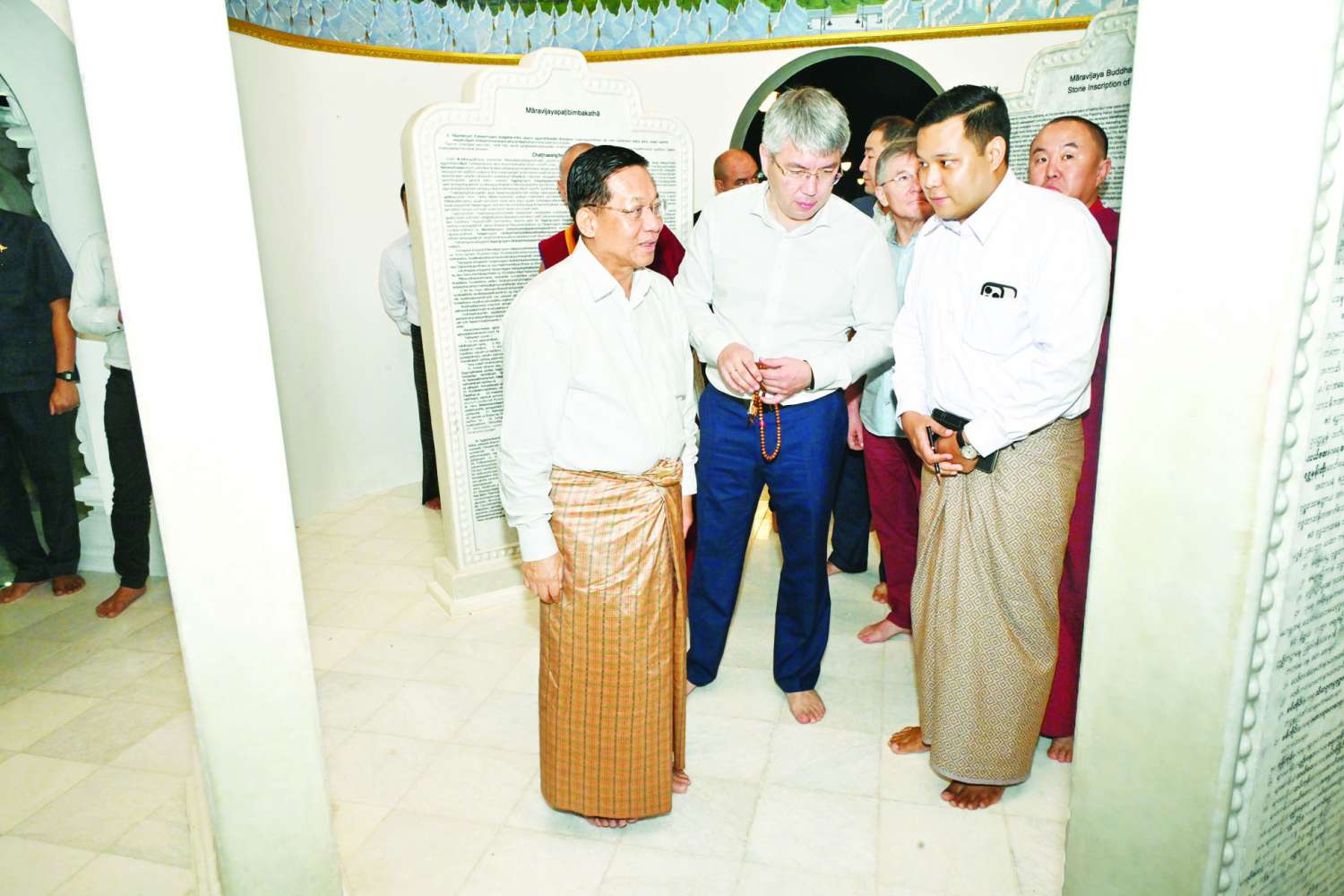 ထို့နောက် နိုင်ငံတော်စီမံအုပ်ချုပ်ရေးကောင်စီဥက္ကဋ္ဌ နိုင်ငံတော်ဝန်ကြီးချုပ်နှင့် ရုရှားဖက်ဒရေးရှင်းနိုင်ငံ၊ ဘူရားတီးရားပြည်နယ်အကြီးအကဲ၊ ဘူရားတီးရားပြည်နယ်အစိုးရဥက္ကဋ္ဌနှင့် ချစ်ကြည်ရေးကိုယ်စားလှယ်အဖွဲ့တို့သည် ကျောက်စာရုံစေတီတော်များအတွင်း လှည့်လည်ကြည့်ရှုလေ့လာကြသည်။