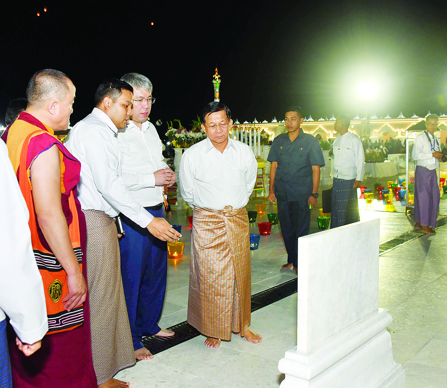 ထို့နောက် နိုင်ငံတော်စီမံအုပ်ချုပ်ရေးကောင်စီဥက္ကဋ္ဌ နိုင်ငံတော်ဝန်ကြီးချုပ်နှင့် ရုရှားဖက်ဒရေးရှင်းနိုင်ငံ၊ ဘူရားတီးရားပြည်နယ်အကြီးအကဲ၊ ဘူရားတီးရားပြည်နယ်အစိုးရဥက္ကဋ္ဌနှင့် ချစ်ကြည်ရေးကိုယ်စားလှယ်အဖွဲ့တို့က စိန်နားပန်မီးပုံးပျံလွှတ်တင်မှုနှင့် ညမီးကျည် (ညမီးကြီး) မီးပုံးပျံများ လွှတ်တင်ပူဇော်ယှဉ်ပြိုင်နေမှုများကို ကြည့်ရှုအားပေးကြသည်။