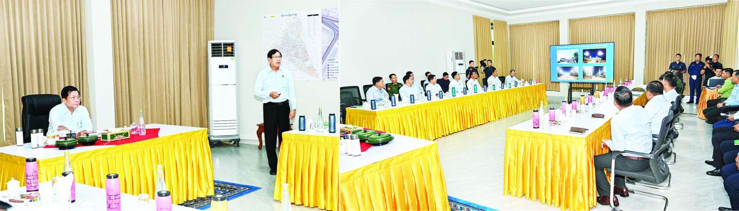 ထို့နောက် နိုင်ငံတော်စီမံအုပ်ချုပ်ရေးကောင်စီဥက္ကဋ္ဌ နိုင်ငံတော်ဝန်ကြီးချုပ်သည် လှိုင်သာယာမြို့နယ် အကွက်ချပုံစံငယ်အားကြည့်ရှု၍ မြို့ပြဖွံ့ဖြိုးတိုးတက်ရေးအတွက် ဆောင်ရွက်နိုင်မည့်အခြေအနေများကို တာဝန်ရှိသူများအား မှာကြားသည်။