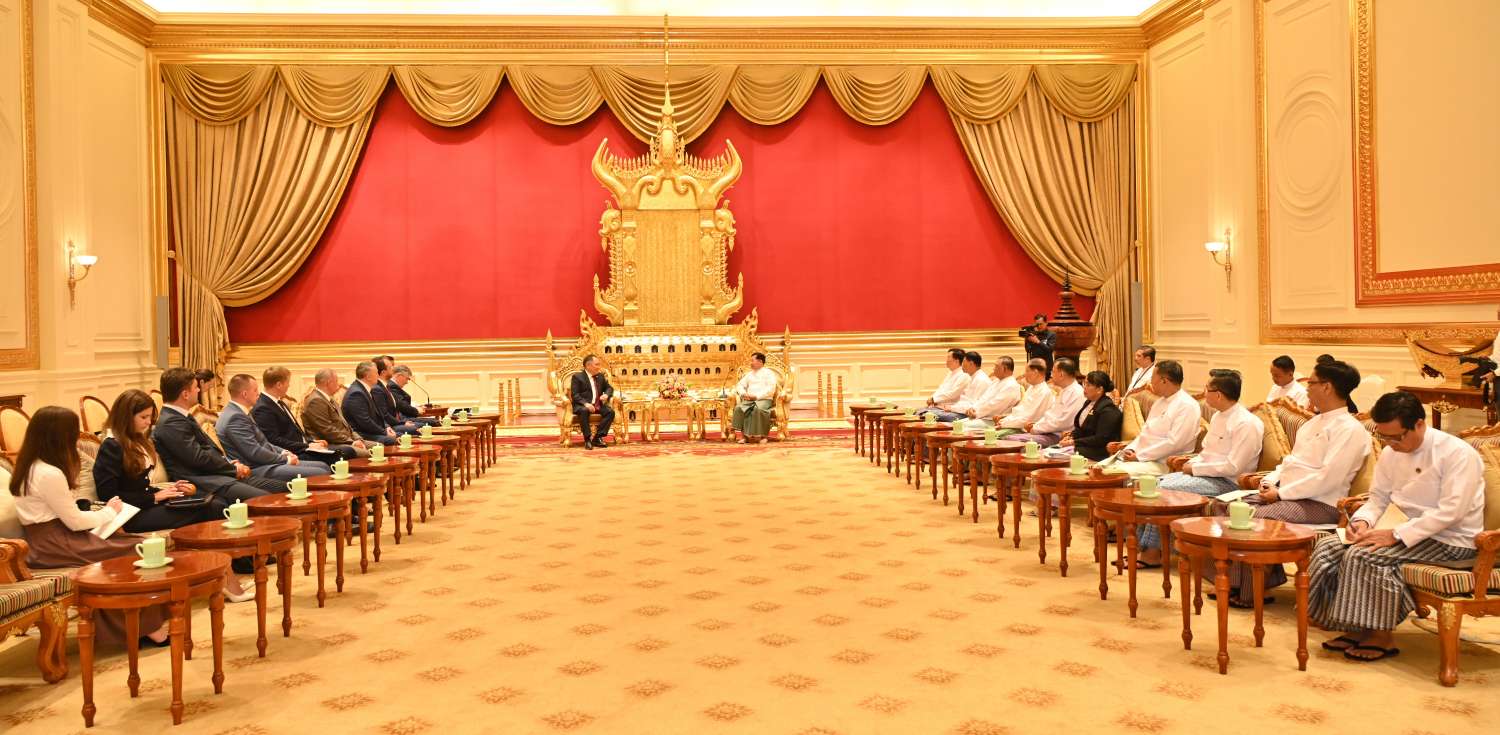 နိုင်ငံတော်စီမံအုပ်ချုပ်ရေးကောင်စီဥက္ကဋ္ဌ နိုင်ငံတော်ဝန်ကြီးချုပ် ဗိုလ်ချုပ်မှူးကြီး မင်းအောင်လှိုင်ထံသို့ ရုရှားဖက်ဒရေးရှင်းနိုင်ငံ၊ ဒူးမားလွှတ်တော် ဒုတိယဥက္ကဋ္ဌ H. E. Mr. Sholban Kara-Ool ဦးဆောင်သည့်ကိုယ်စားလှယ်အဖွဲ့က ယနေ့နံနက်ပိုင်းတွင် နေပြည်တော်ရှိ နိုင်ငံတော်စီမံအုပ်ချုပ်ရေးကောင်စီဥက္ကဋ္ဌရုံး၊ သံတမန်ဆောင်ဧည့်ခန်းမ၌ လာရောက်ဂါရဝပြုတွေ့ဆုံသည်။