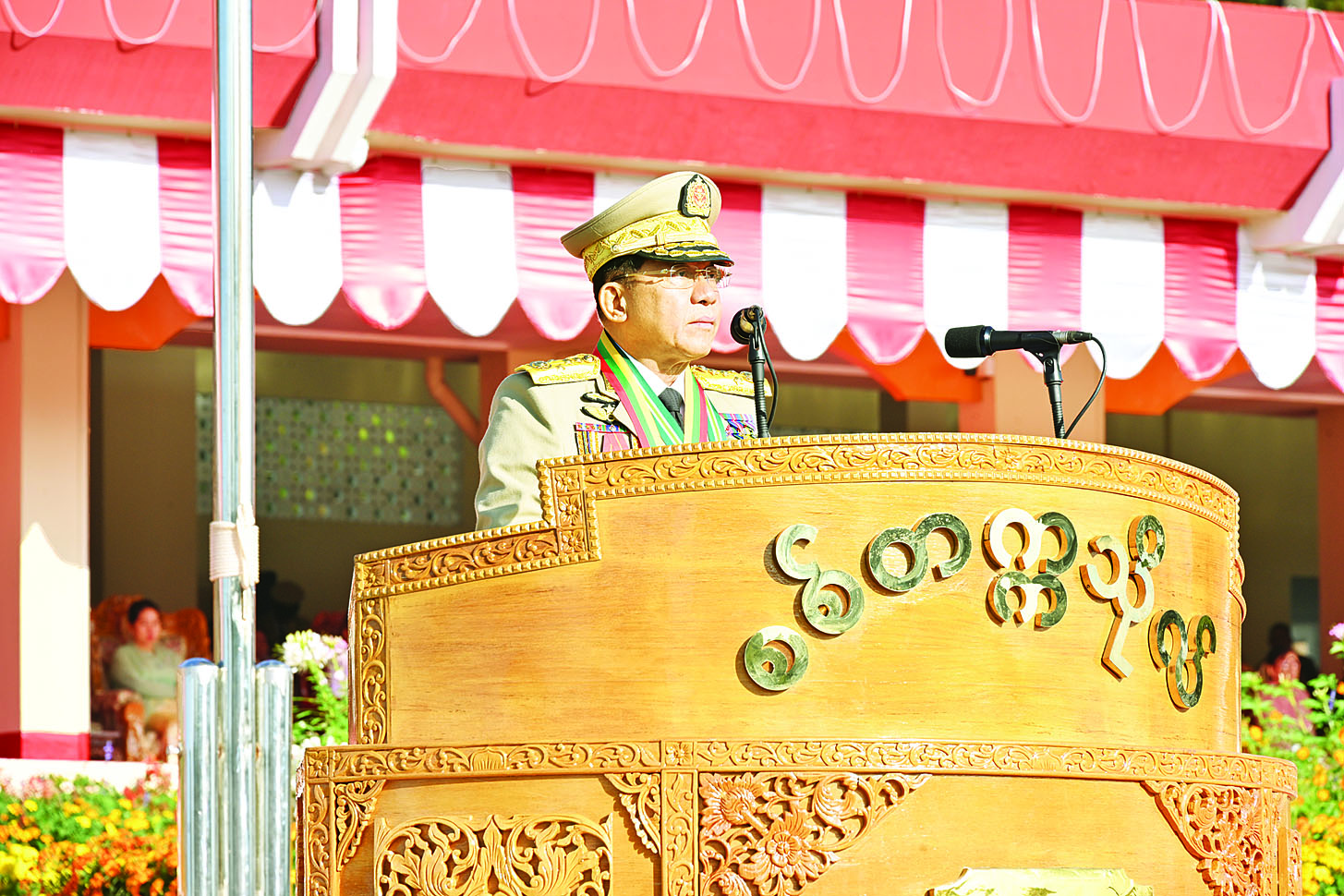 စစ်တက္ကသိုလ်ဗိုလ်လောင်းသင်တန်းအမှတ်စဉ် (၆၆) သင်တန်းဆင်းပွဲအခမ်းအနားတွင် နိုင်ငံတော်စီမံအုပ်ချုပ်ရေးကောင်စီဥက္ကဋ္ဌ တပ်မတော်ကာကွယ်ရေးဦးစီးချုပ် ဗိုလ်ချုပ်မှူးကြီး သတိုးမဟာသရေစည်သူ သတိုးသီရိသုဓမ္မ မင်းအောင်လှိုင် ပြောကြားသည့်မိန့်ခွန်း