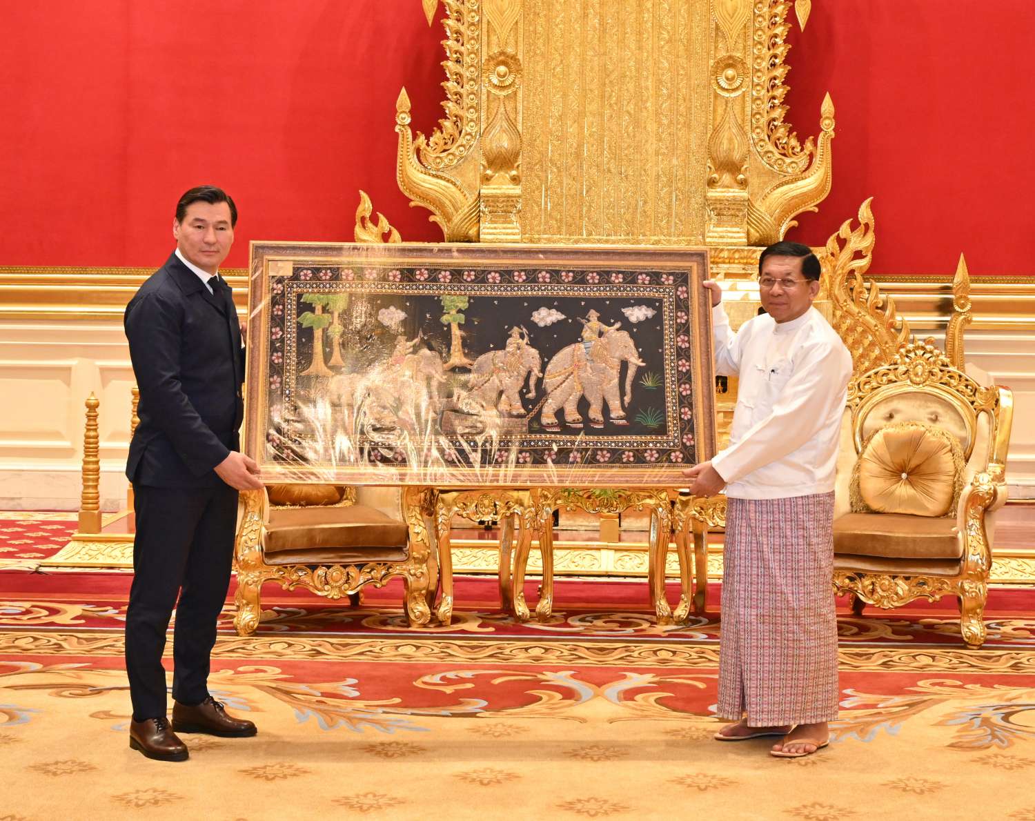 နိုင်ငံတော်စီမံအုပ်ချုပ်ရေးကောင်စီဥက္ကဋ္ဌ နိုင်ငံတော်ဝန်ကြီးချုပ် ဗိုလ်ချုပ်မှူးကြီးမင်းအောင်လှိုင်သည် ရုရှားဖက်ဒရေးရှင်းနိုင်ငံ၊ ကာလ်မီးကီယာပြည်နယ်အကြီးအကဲ H.E. Mr. Batu KHASIKOV ဦးဆောင်သော ကိုယ်စားလှယ်အဖွဲ့အား ယနေ့နံနက်ပိုင်းတွင် နေပြည်တော်ရှိ နိုင်ငံတော်စီမံအုပ်ချုပ်ရေးကောင်စီဥက္ကဋ္ဌရုံး သံတမန်ဆောင်ဧည့်ခန်းမ၌ လက်ခံတွေ့ဆုံသည်။