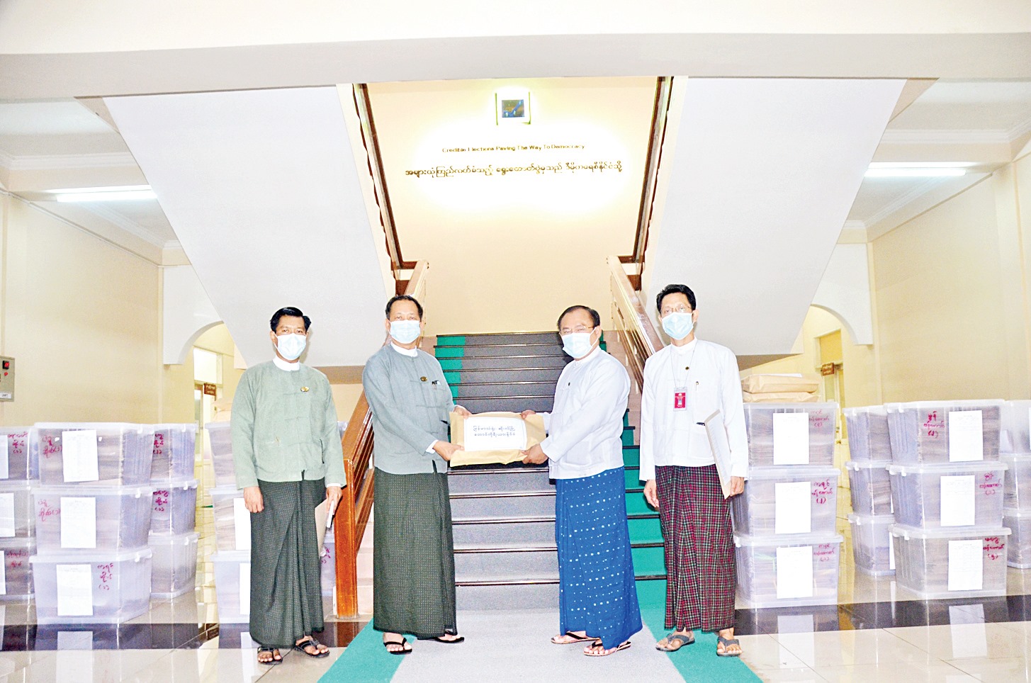 ဆက်လက်စိစစ်ပြီးသည့် ဆန္ဒမဲပေးပိုင်ခွင့်ရှိသူ ၄၃၄၂၂ ဦးအတွက် ကြိုတင်ဆန္ဒမဲလက်မှတ်နှင့် စာအိတ်များကို ပြည်ထောင်စုရွေးကောက်ပွဲကော်မရှင်ရုံး ညွှန်ကြားရေးမှူးချုပ် ဦးခင်မောင်ဦးက နိုင်ငံခြားရေးဝန်ကြီး ဌာန စီမံကိန်းနှင့်စီမံရေးရာဦးစီးဌာန ညွှန်ကြားရေးမှူးချုပ် ဦးအောင်စိုးဝင်းထံသို့ ယနေ့တွင် တတိယအကြိမ်အဖြစ် လွှဲပြောင်းပေးအပ်ခဲ့သည်။