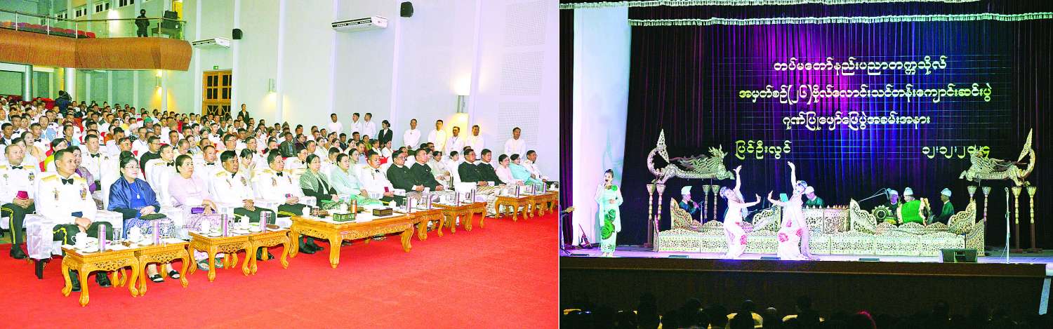 ထို့နောက် နိုင်ငံတော်စီမံအုပ်ချုပ်ရေးကောင်စီဥက္ကဋ္ဌ တပ်မတော်ကာကွယ်ရေးဦးစီးချုပ်နှင့် အဖွဲ့ဝင်များသည် ကျောင်းဆင်းအရာရှိများနှင့်အတူ ဘွဲ့နှင်းသဘင်ခန်းမဆောင်၌ ပြည်သူ့ဆက်ဆံရေးနှင့် စိတ်ဓာတ်စစ်ဆင်ရေးညွှန်ကြားရေးမှူးရုံး ကွပ်ကဲမှုအောက် မြဝတီတေးဂီတအဖွဲ့၏ တေးသီချင်းများဖြင့် ဂုဏ်ပြုဖျော်ဖြေတင်ဆက်မှုများအား ကြည့်ရှုအားပေးခဲ့ကြောင်း သတင်းရရှိသည်။