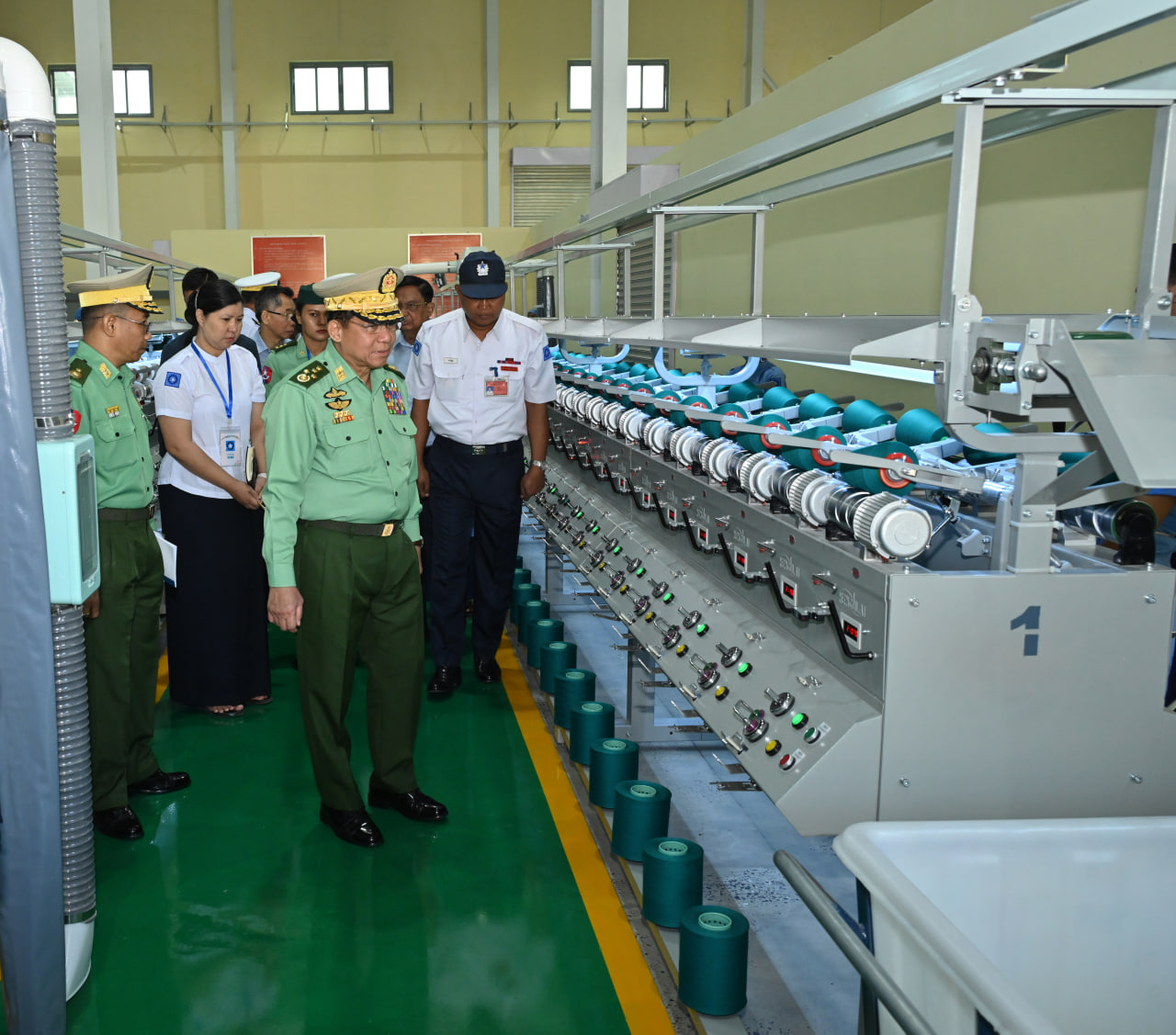 တပ်မတော်ချည်မျှင်နှင့်အထည်စက်ရုံ (မိတ္ထီလာ) ၂/၈၀ ချည်ချောစက်ရုံခွဲ ဖွင့်ပွဲအခမ်းအနားကို ယနေ့နံနက်ပိုင်းတွင် ကျင်းပပြုလုပ်ရာ နိုင်ငံတော်စီမံအုပ်ချုပ်ရေးကောင်စီဥက္ကဋ္ဌ တပ်မတော်ကာကွယ်ရေးဦးစီးချုပ် ဗိုလ်ချုပ်မှူးကြီးမင်းအောင်လှိုင် တက်ရောက်ချီးမြှင့်ဖွင့်လှစ်ပေးသည်။
