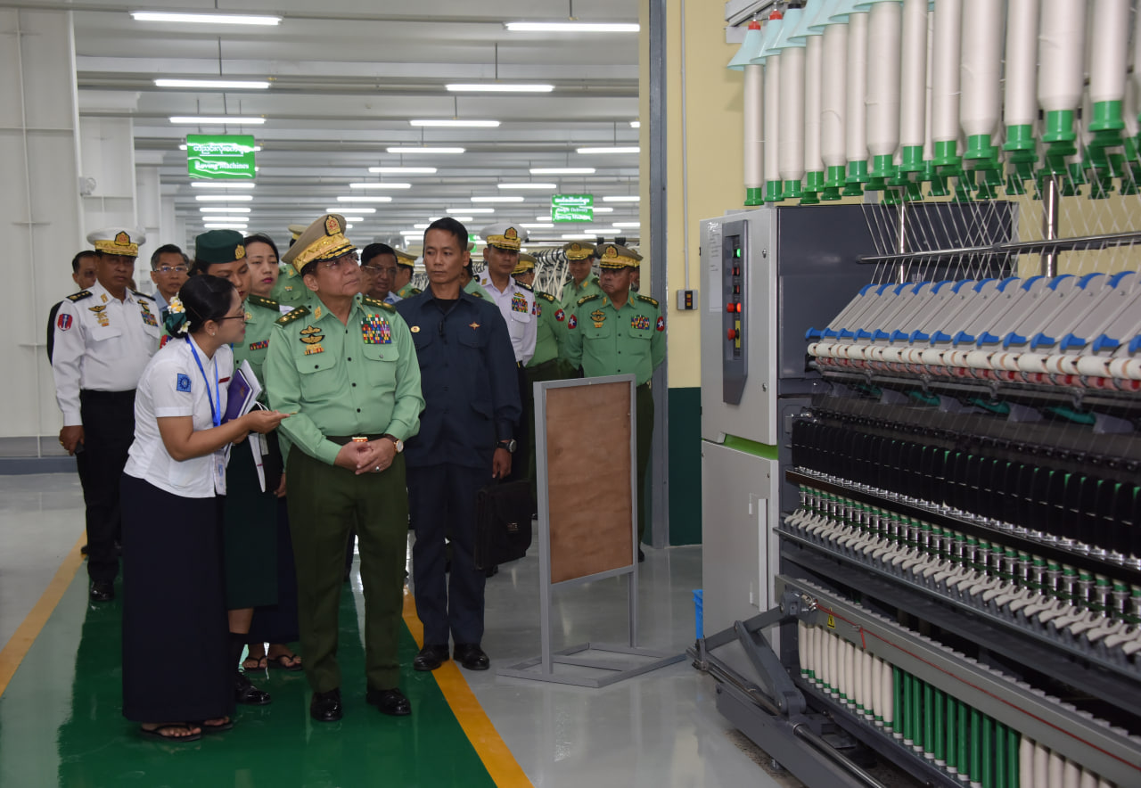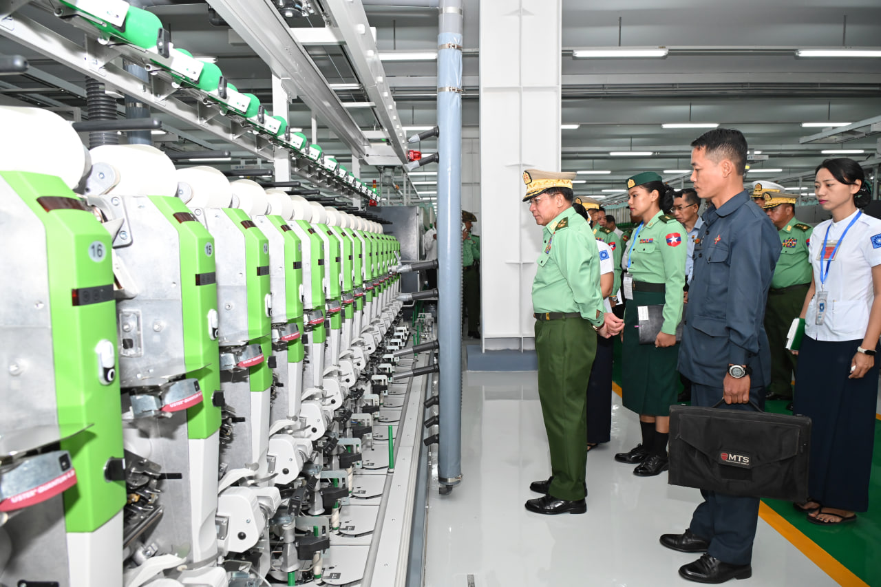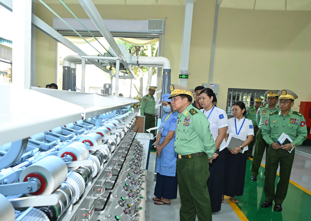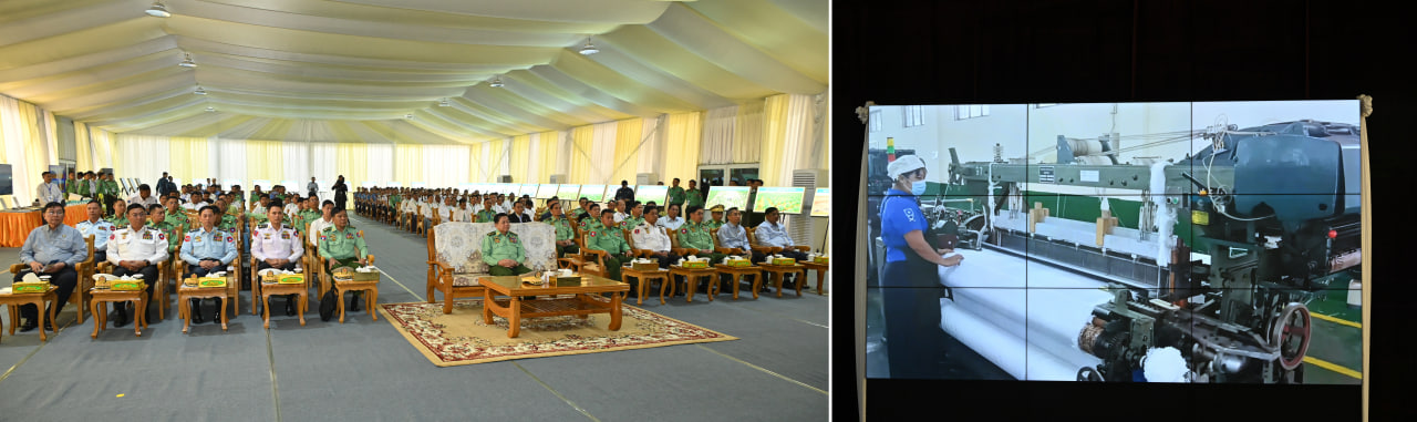 တပ်မတော်ချည်မျှင်နှင့် အထည်စက်ရုံ (မိတ္ထီလာ) ၂/၈၀ ချည်ချောစက်ရုံခွဲ ဖွင့်ပွဲအခမ်းအနားကျင်းပ နိုင်ငံတော်စီမံအုပ်ချုပ်ရေးကောင်စီဥက္ကဋ္ဌ တပ်မတော်ကာကွယ်ရေးဦးစီးချုပ် ဗိုလ်ချုပ်မှူးကြီးမင်းအောင်လှိုင် တက်ရောက်ချီးမြှင့်ဖွင့်လှစ်