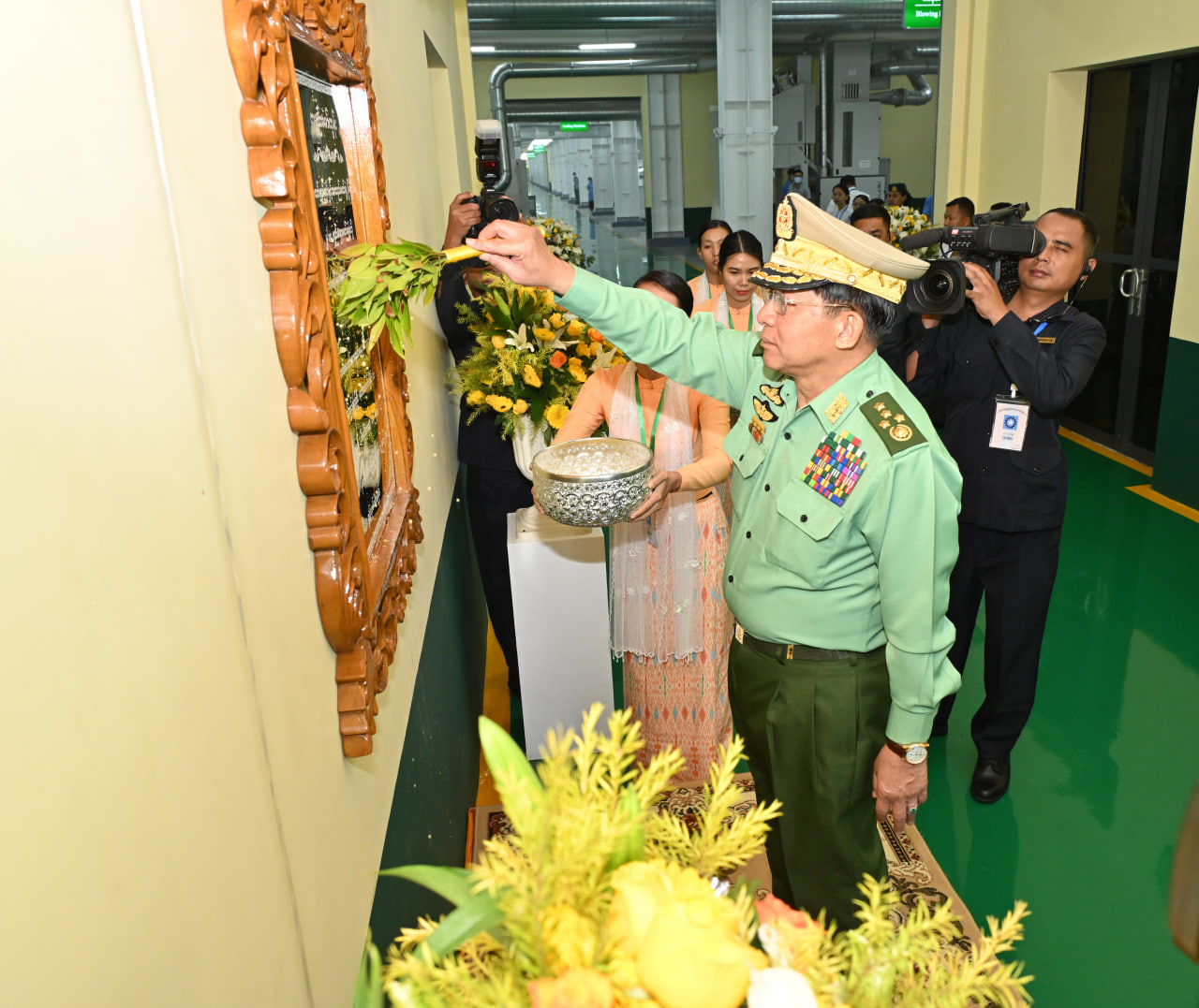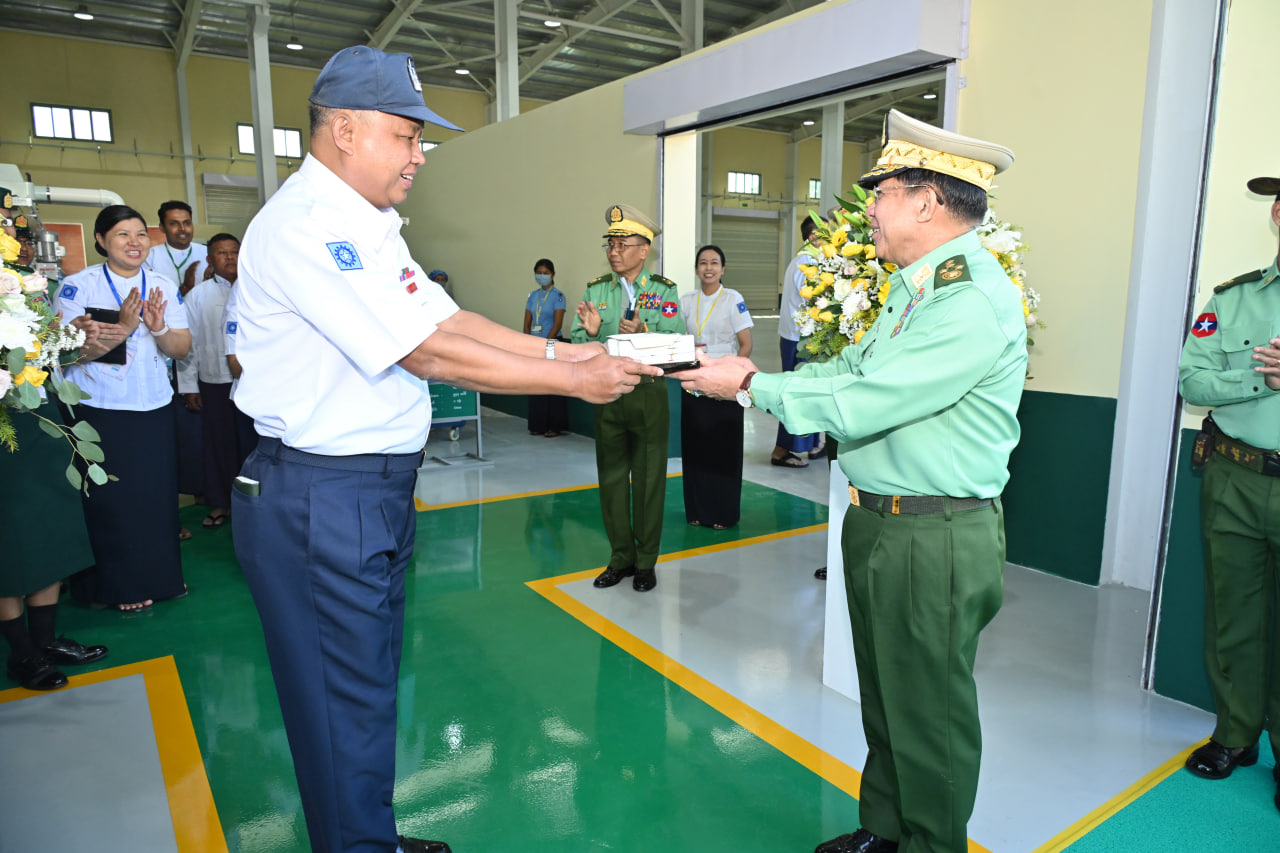 ထို့နောက် နိုင်ငံတော်စီမံအုပ်ချုပ်ရေးကောင်စီဥက္ကဋ္ဌ တပ်မတော်ကာကွယ်ရေး ဦးစီးချုပ်ကစက်ရုံဝန်ထမ်းများအတွက် ချီးမြှင့်ငွေများကိုပေးအပ်ရာ စက်ရုံမှတာဝန်ရှိသူတစ်ဦးက လက်ခံရယူသည်။