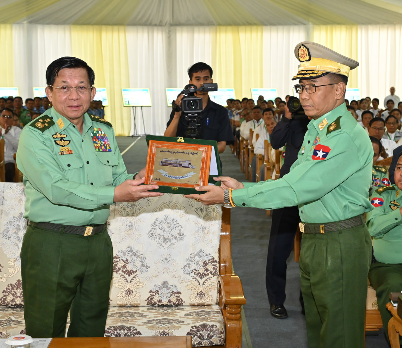 ယင်းနောက် နိုင်ငံတော်စီမံအုပ်ချုပ်ရေးကောင်စီဥက္ကဋ္ဌ တပ်မတော်ကာကွယ် ရေးဦးစီးချုပ်က စက်တပ်ဆင်ရေးလုပ်ငန်းများကို ဦးစီးကြပ်မတ်ဆောင်ရွက်ခဲ့သည့် Project Chief Engineer အား ဂုဏ်ပြုလက်ဆောင်ပေးအပ်သည်။