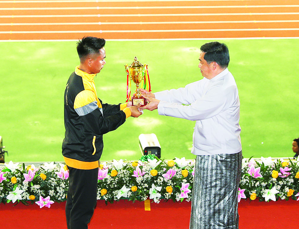 ယင်းနောက် နိုင်ငံတော်စီမံအုပ်ချုပ်ရေးကောင်စီဒုတိယဥက္ကဋ္ဌ ဒုတိယဝန်ကြီးချုပ် ဒုတိယဗိုလ်ချုပ်မှူးကြီး စိုးဝင်းက ပထမဆုရရှိသည့် ဆောက်လုပ်ရေးဝန်ကြီးဌာနအသင်းအား တစ်ဦးချင်း ဆုတံဆိပ်များနှင့် အမျိုးသားအားကစားပွဲတော်အထိမ်းအမှတ် လာဘ်ကောင်ရုပ်များကို ပေးအပ်ချီးမြှင့်သည်။