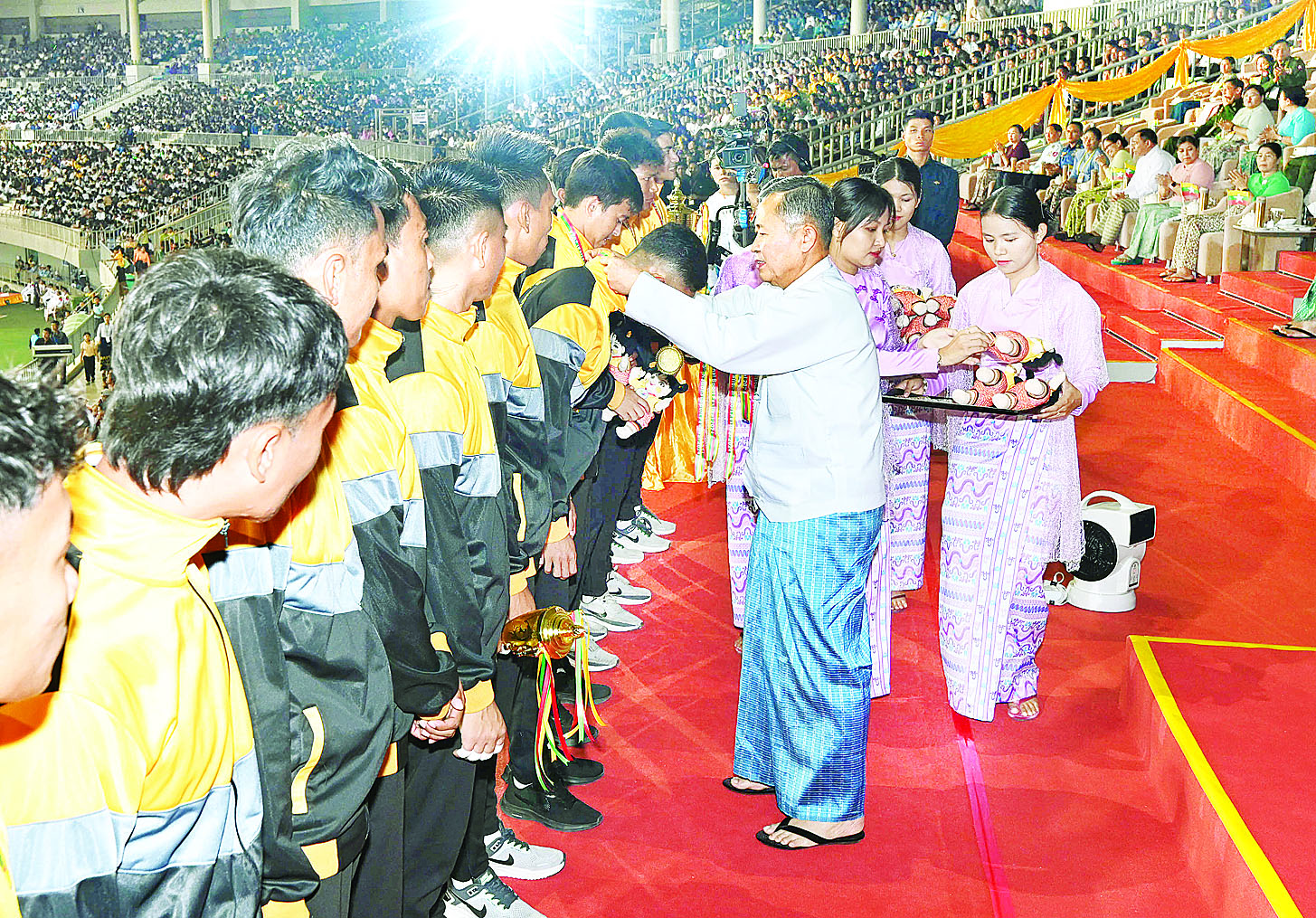 ထို့နောက် နိုင်ငံတော်စီမံအုပ်ချုပ်ရေးကောင်စီဥက္ကဋ္ဌ နိုင်ငံတော်ဝန်ကြီးချုပ်၊ ဇနီးနှင့် ဧည့်သည်တော်များသည် ၂ဝ၂၄ ခုနှစ်၊ ပဉ္စမအကြိမ်မြောက် အမျိုးသားအားကစားပွဲတော် ဘောလုံးအားကစားပြိုင်ပွဲ ဗိုလ်လုပွဲအဖြစ် စီမံကိန်းနှင့်ဘဏ္ဍာရေးဝန်ကြီးဌာနအသင်းနှင့် ဆောက်လုပ်ရေးဝန်ကြီးဌာနအသင်းတို့ အကြိတ်အနယ်ယှဉ်ပြိုင်ကစားနေမှုကို ကြည့်ရှုအားပေးကြသည်။ အဆိုပါပွဲစဉ်တွင် စီမံကိန်းနှင့်ဘဏ္ဍာရေးဝန်ကြီးဌာနအသင်းနှင့် ဆောက်လုပ်ရေးဝန်ကြီးဌာနအသင်းတို့သည် ဗိုလ်လုပွဲသို့တက်ရောက်လာကြသည့် အသင်းများဖြစ်သည်နှင့်အညီ တစ်ဖက်နှင့်တစ်ဖက် အပြန်အလှန်အကြိတ်အနယ် ဖိအားပေးယှဉ်ပြိုင်ကစားခဲ့ကြပြီး ပွဲကစားချိန် ၈၇ မိနစ်တွင် သွင်းယူခဲ့သည့် တစ်လုံးတည်းသောအဖိုးတန်အနိုင်ဂိုးဖြင့် ဆောက်လုပ်ရေးဝန်ကြီးဌာနအသင်းက အနိုင်ရဗိုလ်စွဲခဲ့သည်။