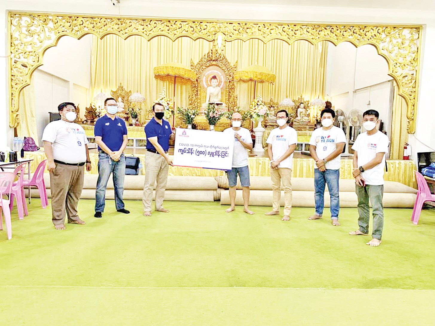 လှူဒါန်းပွဲကို ယနေ့ မွန်းလွဲပိုင်းက ရန်ကုန်မြို့ ရွှေတိဂုံစေတီတော် တောင်ဘက်မုခ်ရှိ စည်ပင်ဓမ္မာရုံ၌ ကျင်းပရာ ကမ္ဘောဇဘဏ်မှ တာဝန်ရှိသူများက အလှူငွေကျပ် သိန်း ၅၀၀ကို We Love Yangon ပရဟိတအဖွဲ့ထံ ပေးအပ် လှူဒါန်းခဲ့သည်။ ကမ္ဘောဇဘဏ်၏ လှူဒါန်းငွေမှ ငွေကျပ် သိန်း ၃၀၀ ကို ရန်ကုန်တိုင်း ဒေသကြီးအတွင်းရှိ ကျန်းမာရေး ဝန်ထမ်း၊ စေတနာ့ ဝန်ထမ်းများအတွက် လိုအပ်သည်များ ပံ့ပိုးပေးနိုင်ရန်အတွက် လည်းကောင်း၊ ငွေကျပ်သိန်း ၂၀၀ ကို ကန့်သတ် စောင့်ကြည့်စခန်းများရှိ စောင့်ကြည့် လူနာများအတွက် အထွေထွေအသုံးပြု နိုင်ရန်အတွက် လည်းကောင်း We Love Yangon ပရဟိတအဖွဲ့မှ တစ်ဆင့် ပေးအပ် လှူဒါန်းခြင်းဖြစ်သည်။