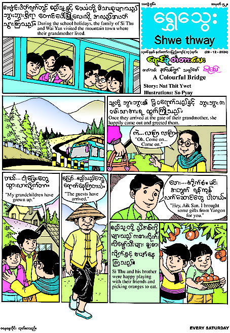 ၂၈-၁၂-၂၀၂၄ ရက်(စနေနေ့) တွင် ထွက်ရှိမည့် ရွှေသွေးဂျာနယ် အတွဲ (၅၆)၊ အမှတ် (၅၂) တွင် စည်သူတို့သူငယ်ချင်းများ သိချင်သော သက်တံအကြောင်းကို အဘွားကပြောပြထားပုံအား သရုပ်ဖော်ထားသည့် “ရောင်စုံတံတားလေး” မျက်နှာဖုံးကာတွန်း၊ သရဏဂုံဆောက်တည်ခြင်း၏ အကျိုးတရားနှင့် အစွမ်းများအကြောင်း ဗဟုသုတရရှိစေရန် ရေးသားထားသည့် “သရဏဂုံအစွမ်း အံ့မခန်း” သုတ ဆောင်းပါးကဏ္ဍ၊ လိပ်ပြာမယ်လေးရွှေရုပ်မှာ သူ၏လှပသည့် အတောင်ပံများအပေါ် မာနကြီးပြီး ဘဝမြင့်မိသည့်အတွက် ဖမ်းဆီးခံရပုံအကြောင်း သရုပ်ဖော်ထားသည့် “မာနကြီးတဲ့ လိပ်ပြာမယ်” နှစ်မျက်နှာကာတွန်း၊ ဟိန်းစည်သည် စာပေရော အားကစားပါ ထူးချွန်သူ ဖြစ်ပြီး သူ၏ဉာဏ်ကောင်းပုံနှင့် တွေးခေါ် မြော်မြင်တတ်ပုံအကြောင်း ရေးသားထားသည့် “စာပေဖတ်ကဂုဏ်တင့်စွ” ဝတ္ထုကဏ္ဍ၊ သူတော်ကောင်းယောင် ဟန်ဆောင်နေသောကြောင် ဖြူသည်နောက်ဆုံးတွင် တောခွေး၏ ကိုက်ဖြတ်စားသောက်ခြင်းကို ခံလိုက်ရသည့် အကြောင်း ရေးသားထားသည့် “သူတော်ကောင်း ယောင်ဆောင်သူ” ပုံပြင်ကဏ္ဍ၊ တပည့်မေသီဟန်က ဆရာဖြစ်သူကို သတိတရဖြင့် လာရောက်ကန်တော့သည့်အကြောင်း သရုပ် ဖော်ထားသည့် “ပီတိအပြုံး” နှစ်မျက်နှာကာတွန်း၊ အဝမလွန်ဘဲ အာဟာရဖြစ်အောင် နေထိုင်စားသောက်မှု မှန်ကန်စေရေးအတွက် ဦးဦးဖိုးရှုပ်က ကလေးများကို ဆုံးမထားသည့် အကြောင်း သရုပ်ဖော်ထားသည့် “ဖြိုးရဲ- အဝလွန်သူ” နှစ်မျက်နှာကာတွန်း၊ တိုက်ခန်းတံခါးသော့ အခန်းထဲတွင် မေ့ကျန်ခဲ့ပြီးသော့ ခတ်မိသွားသည်ကို အပြန်အလှန်ပြောဆိုထား သည့်အကြောင်း ရေးသားထားသည့် “ရွှေသွေးစကားဝိုင်း” အင်္ဂလိပ်စာကဏ္ဍအပါအဝင် အင်္ဂလိပ်စာကဏ္ဍ၊ ဉာဏ်စမ်းကဏ္ဍစုံစုံလင်လင်ဖြင့် ထွက်ရှိပြီဖြစ်ရာ တစ်စောင်လျှင် ငွေကျပ် ၄၀၀ ဖြင့် စာပေဗိမာန် စာအုပ်အရောင်းဆိုင်များတွင် ဝယ်ယူရရှိနိုင်ကြောင်း သိရသည်။