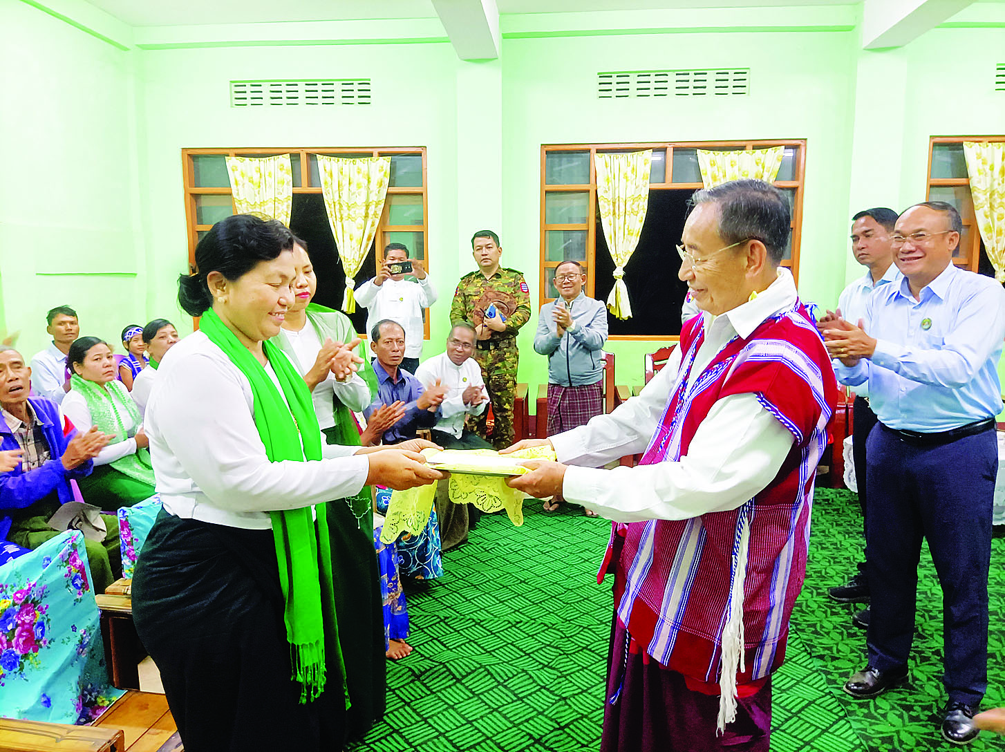 ဆက်လက်၍ ညောင်တုန်းမြို့နယ် ကျုံတမာကျေးရွာအုပ်စု ချောင်းဝကျေးရွာတွင် ကျင်းပပြုလုပ်သည့် ကရင်အမျိုးသားနှစ်သစ်ကူးပွဲတော်သို့တက်ရောက်ပြီး ကရင်တိုင်းရင်းသားများနှင့်တွေ့ဆုံ၍ “ကရင်လူမျိုးတို့၏ စာပေ၊ ယဉ်ကျေးမှုနှင့် စစ်မှန်သည့် ရိုးရာအမွေအနှစ်များကို မပျောက်မပျက် ထိန်းသိမ်းကြကာ စည်းလုံးညီညွတ်စွာဖြင့် နေထိုင်သွားကြရန်လိုကြောင်း” နှစ်သစ်အကြို နှုတ်ခွန်းဆက်စကားပြောကြားပြီး ကရင်ရိုးရာဒုံးအကဖြင့် ဧည့်ခံဖျော်ဖြေမှုကို ကြည့်ရှုအားပေး၍ ချီးမြှင့်ငွေများပေးအပ်သည်။
