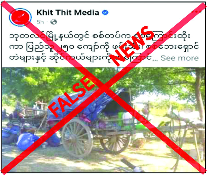 ဘုတလင်မြို့နယ်အတွင်း လုံခြုံရေးတပ်ဖွဲ့ဝင်များက စစ်ကြောင်းထိုးကာ ပြည်သူ ၂၅၀ ကျော်ကို ဖမ်းဆီးပြီး စစ်ဘေးရှောင်တဲများနှင့်ဆိုင်ကယ်များကို အကြောင်းမဲ့မီးရှို့ခဲ့ကြောင်း သတင်းတု၊ သတင်းအမှားများ မဟုတ်မမှန်ရေးသားဖြန့်ဝေ