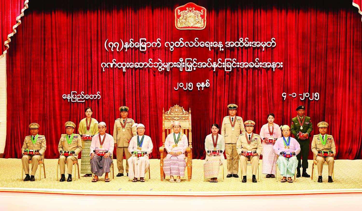 အေးချမ်းသာယာပြီး ခေတ်မီဖွံ့ဖြိုးတိုးတက်သည့် နိုင်ငံတော်ကို တည်ဆောက်ရာတွင် စွမ်းစွမ်းတမံဆောင်ရွက်ကြသည့် ပုဂ္ဂိုလ်များ၊ အမျိုးသားရေးမူဝါဒဖြစ်သည့် ဒို့တာဝန်အရေးသုံးပါးကို ကာကွယ်စောင့်ရှောက်ရာတွင် သက်စွန့်ကြိုးပမ်းဆောင်ရွက်ကြသည့် ပုဂ္ဂိုလ်များ၊ ရပ်ရွာအေးချမ်းသာယာရေးနှင့် တရားဥပဒေစိုးမိုးရေး၊ ခေတ်မီဖွံ့ဖြိုးတိုးတက်သည့် နိုင်ငံတော်ဖြစ်ပေါ်လာစေရေးအတွက် နိုင်ငံရေး၊ စီးပွားရေး၊ လူမှုရေးဦးတည်ချက်များနှင့်အညီ ထူးခြားစွာအားထုတ်ကြိုးပမ်းဆောင်ရွက်ကြသည့် ပုဂ္ဂိုလ်များ၊ သိပ္ပံပညာ၊ ဝိဇ္ဇာပညာနှင့် အခြားသောပညာရပ်တစ်ခုခုတွင် ကမ္ဘာ့အဆင့်မီအောင်မြင်စွာ တီထွင်ဖန်တီးစွမ်းဆောင်နိုင်သည့် ပုဂ္ဂိုလ်များ၊ စာပေနှင့်အနုသုခုမပညာရပ်များတွင် ထူးခြားကောင်းမွန်စွာတတ်မြောက်သည့် ပုဂ္ဂိုလ်များအပေါ်တွင် လေးစားတန်ဖိုးထားသည့်အနေဖြင့် နိုင်ငံတော်စီမံအုပ်ချုပ်ရေးကောင်စီက နှစ်စဉ်ဂုဏ်ပြုချီးမြှင့်မှုများ ပြုလုပ်လျက်ရှိကြောင်း။