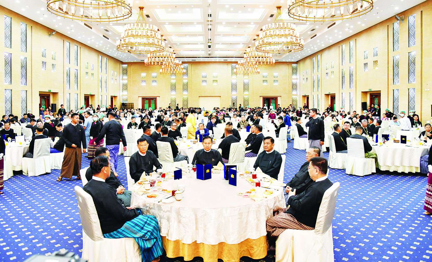 ယင်းနောက် နိုင်ငံတော်စီမံအုပ်ချုပ်ရေးကောင်စီဒုတိယဥက္ကဋ္ဌ ဒုတိယဝန်ကြီးချုပ်သည် အခမ်းအနားသို့ တက်ရောက်လာကြသူများနှင့်အတူ ဂုဏ်ပြုညစာကို အတူတကွသုံးဆောင်ကြသည်။
