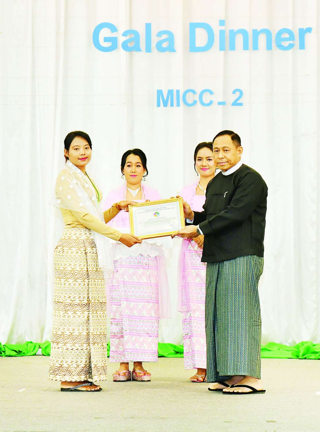 ဆက်လက်၍ နိုင်ငံတော်စီမံအုပ်ချုပ်ရေးကောင်စီအဖွဲ့ဝင် ဒုတိယဝန်ကြီးချုပ်နှင့် ကာကွယ်ရေးဝန်ကြီးဌာန ပြည်ထောင်စုဝန်ကြီး ဗိုလ်ချုပ်ကြီး မောင်မောင်အေးက ဝိဇ္ဇာသိပ္ပံပညာရပ်ဆိုင်ရာစာတမ်းရှင်များကိုယ်စား စာတမ်းရှင်တစ်ဦးအားလည်းကောင်း၊ သမုဒ္ဒရာနှင့် ကမ္ဘာမြေသိပ္ပံဆိုင်ရာ စာတမ်းရှင်များကိုယ်စား စာတမ်းရှင်တစ်ဦးအားလည်းကောင်း၊အသေးစား၊ အငယ်စားနှင့် အလတ်စားစီးပွားရေးလုပ်ငန်းများ၊ နည်းပညာ၊ သက်မွေးပညာနှင့်လေ့ကျင့်ရေး စာတမ်းရှင်များကိုယ်စား စာတမ်းရှင်တစ်ဦးအားလည်းကောင်း ဂုဏ်ပြုလက်မှတ်များ ပေးအပ်ချီးမြှင့်သည်။