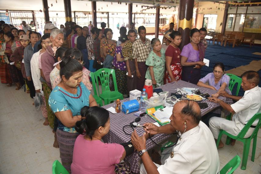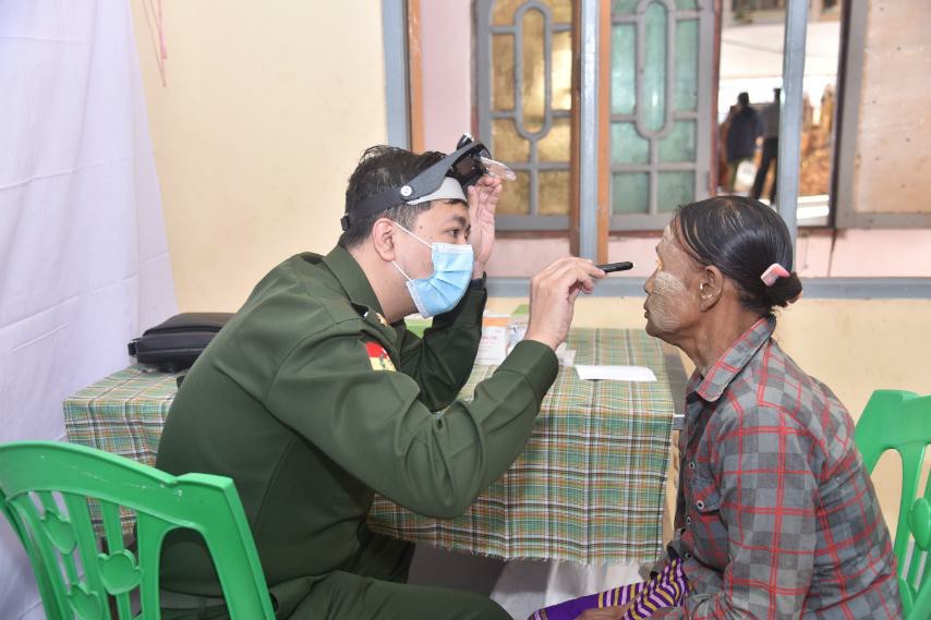 ဧရာဝတီမြစ်ကြောင်းတစ်လျှောက်ရှိ ဒေသခံပြည်သူများအား ကျန်းမာရေးစောင့်ရှောက်မှုလုပ်ငန်းများ ဆောင်ရွက်ပေးရန်အတွက် တပ်မတော်မြစ်တွင်းသွားဆေးရုံ ရေယာဉ်(ရွှေပုဇွန်)၊ မြစ်ရေယာဉ် (စကု)တို့နှင့်အတူ လိုက်ပါလာသည့် တပ်မတော်မှ ပါရဂူများ၊ ဆေးမှူးများ၊ သူနာပြုများပါဝင်သော နယ်လှည့်အထူးကုဆေးအဖွဲ့သည် ယနေ့တွင် ဧရာဝတီတိုင်းဒေသကြီး၊ မအူပင်မြို့နယ်၊ ထနီးကျေးရွာ အောင်ကျိုက္ခမီ ဘုန်းကြီးကျောင်းရှိ ဓမ္မရတနာဗိမာန်တွင်အခြေပြု၍ အဆိုပါမြို့နှင့်ပတ်ဝန်းကျင်ကျေးရွာများမှ ဒေသခံပြည်သူ ၄၅၅ ဦးတို့ကို ကျန်းမာရေးစောင့်ရှောက်မှုလုပ်ငန်းများ ဆောင်ရွက်ပေးသည်။