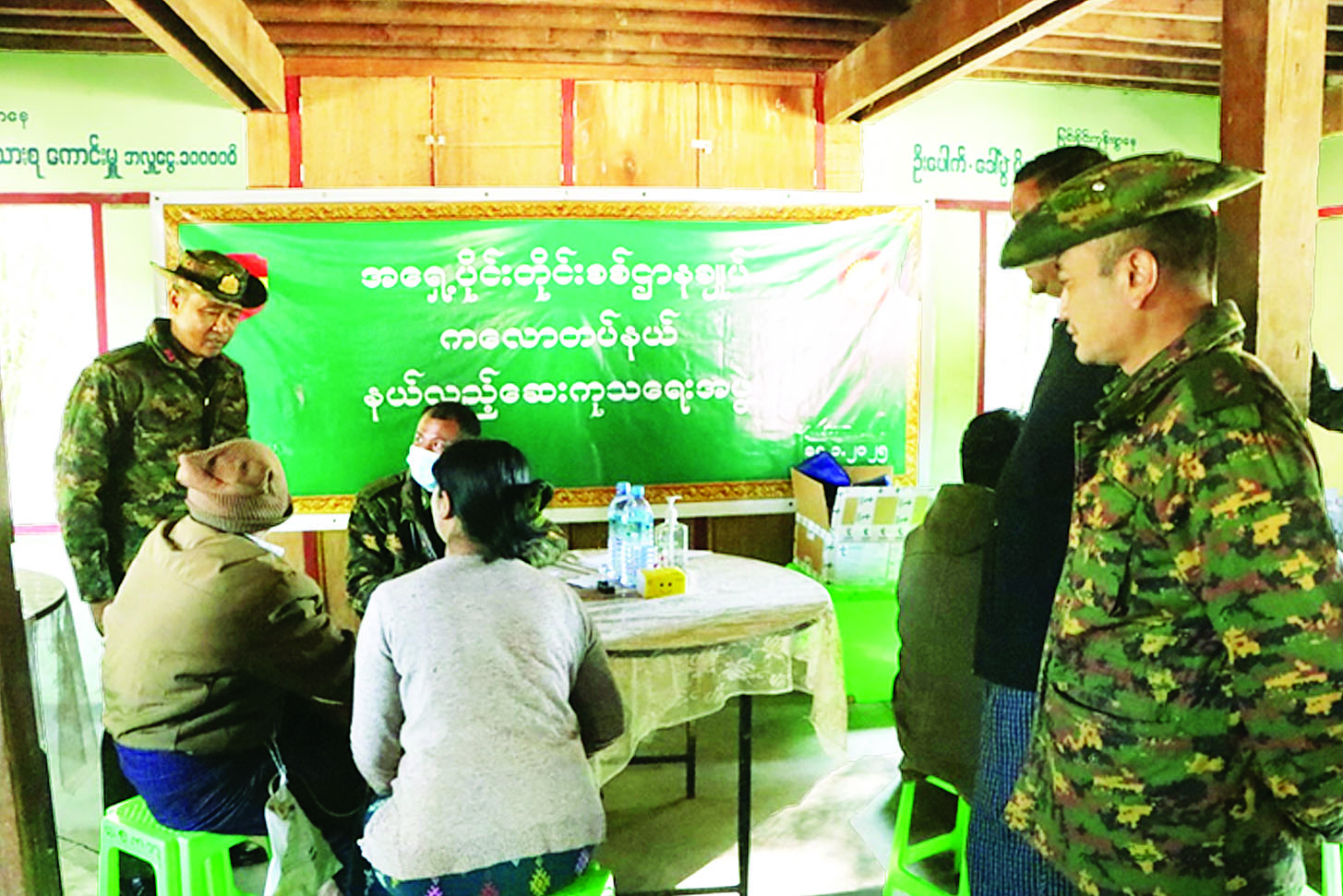ထိုသို့ ဆောင်ရွက်ပေးရာတွင် ဆေးကုသရေးအဖွဲ့က ဒေသခံပြည်သူ ၁၉၈ ဦးတို့အား ခွဲစိတ်ကုသမှုဆိုင်ရာရောဂါ၊ မျက်စိရောဂါ၊ သွားနှင့်ခံတွင်းရောဂါ၊ အထွေထွေရောဂါတို့နှင့်ပတ်သက်၍ လိုအပ်သည့် ကျန်းမာရေးစောင့်ရှောက်မှုလုပ်ငန်းများ ဆောင်ရွက်ပေးပြီး ဆေးရုံတက်ရောက်ကုသရန် လိုအပ်သည့် လူနာများအား နယ်မြေခံတပ်မတော်ဆေးရုံသို့ တက်ရောက်ကုသနိုင်ရေးစီစဉ်ဆောင်ရွက်ပေးသည်။