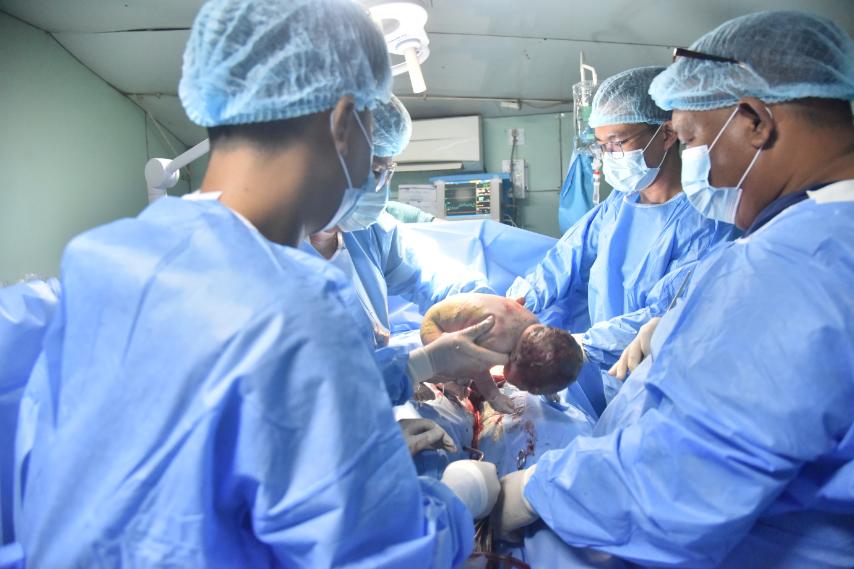 ထို့ပြင် တပ်မတော်မြစ်တွင်းသွား ဆေးရုံရေယာဉ် (ရွှေပုဇွန်) ပေါ်၌ ဇန်နဝါရီလ ၁၈ ရက်၊ ည ၈ နာရီ ၆ မိနစ်ခန့်တွင် မအူပင်မြို့နယ်၊ အလန်းကြီးကျေးရွာနေ ဦးဝင်းထွန်းနိုင်၏ ဇနီးဖြစ်သူ ဒေါ်မြတ်သူအောင်ကို ၇ ပေါင် ၇ အောင်စရှိ မိန်းကလေးတစ်ဦးအား အောင်မြင်စွာခွဲစိတ်မွေးဖွားပေးနိုင်ခဲ့ပြီး မိခင်နှင့်ကလေးမှာ ကျန်းမာရေးကောင်းမွန်လျက်ရှိသည်။ အဆိုပါ ကလေးငယ်အား ကာကွယ်ရေးဦးစီးချုပ်ရုံး (ရေ) မှပေးအပ်သည့် ချီးမြှင့်ငွေနှင့်လက်ဆောင်ပစ္စည်းများကို တာဝန်ရှိသူတစ်ဦးက ကိုယ်စားပေးအပ်ခဲ့သည်။