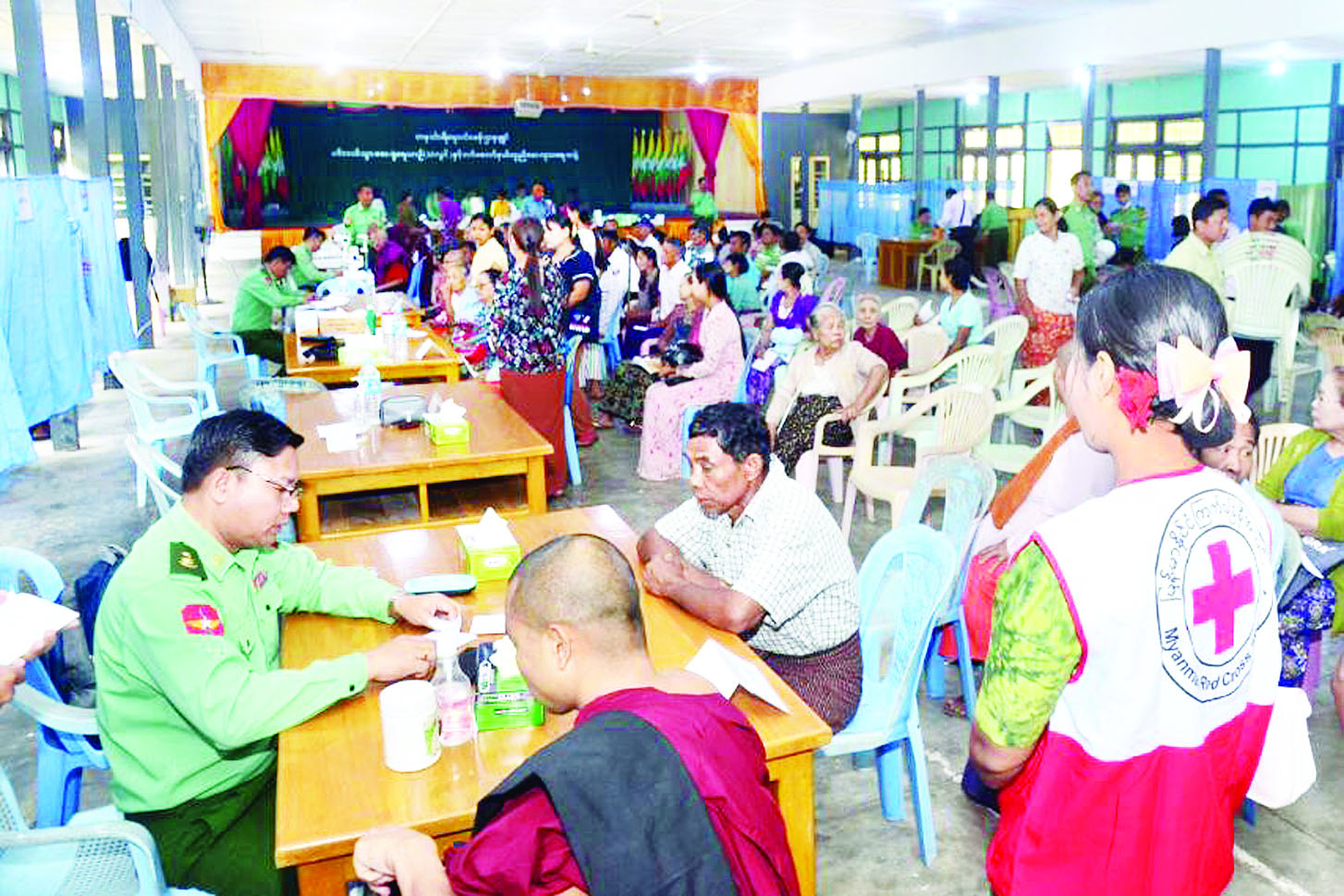ထိုသို့ဆောင်ရွက်ပေးရာတွင် ဆေးကုသမှုဆိုင်ရာရောဂါ ၂၉၃ ဦး၊ ခွဲစိတ်ရောဂါ ၂၇ ဦး၊ သားဖွား/ မီးယပ်ရောဂါ ၅၃ ဦး၊ ကလေးရောဂါ ၃၆ ဦး၊ အရိုးရောဂါ ၉၅ ဦး၊ နား၊ နှာခေါင်း၊ လည်ချောင်းရောဂါ ၅၆ ဦး၊ မျက်စိရောဂါ ၁၈၉ ဦးနှင့် သွားနှင့် ခံတွင်းရောဂါ ၄၇ ဦးတို့ကို လိုအပ်သည့် ဆေးဝါးကုသမှုများ ဆောင်ရွက်ပေးသည်။ ၎င်းတို့အနက် အထွေထွေခွဲစိတ်လူနာ ၆ ဦး၊ မျက်စိခွဲစိတ်လူနာ ၂၃ ဦး၊ ဓာတ်မှန်ရိုက်လူနာ ၂၅ ဦး၊ အာထရာဆောင်းဖြင့် စမ်းသပ်စစ်ဆေးလူနာ ၂၅ ဦး၊ ECG စက်ဖြင့် နှလုံးစမ်းသပ်လူနာ ၂၃ ဦးနှင့် ဓာတ်ခွဲစမ်းသပ်လူနာ ၇၁ ဦးတို့ကို ရောဂါရှာဖွေစမ်းသပ်ကုသပေးခြင်းများ ဆောင်ရွက်ပေးပြီး ဆေးရုံတက်ရောက်ကုသရန် လိုအပ်သည့်လူနာ ၄ ဦးတို့ကို နီးစပ်ရာ တပ်မတော်ဆေးရုံများသို့ တက်ရောက်ကုသနိုင်ရေး စီစဉ်ဆောင်ရွက်ပေးသည်။