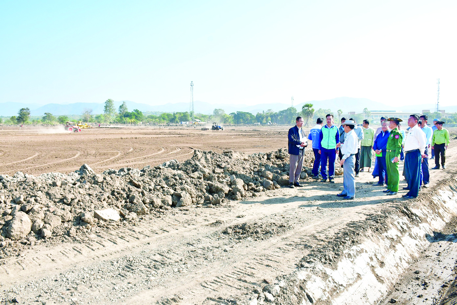 ဦးစွာ နေပြည်တော်ကောင်စီဥက္ကဋ္ဌနှင့် အဖွဲ့ဝင်များသည် ဒေသခံတောင်သူများနှင့်တွေ့ဆုံ၍ စက်မှုလယ်ယာစနစ်ကျ လယ်မြေဖော်ထုတ်ပေးခြင်းနှင့် စပ်လျဉ်း၍ ရှင်းလင်းပြောကြားပြီး တောင်သူများ၏ တင်ပြချက်များကို ပေါင်းစပ်ညှိနှိုင်းဆောင်ရွက်ပေးကာ စက်မှုလယ်ယာစနစ်ကျ လယ်မြေဖော်ထုတ်နေမှုကို လှည့်လည်ကြည့်ရှုစစ်ဆေးပြီးလိုအပ်သည်များကို တာဝန်ရှိသူများအား မှာကြားသည်။