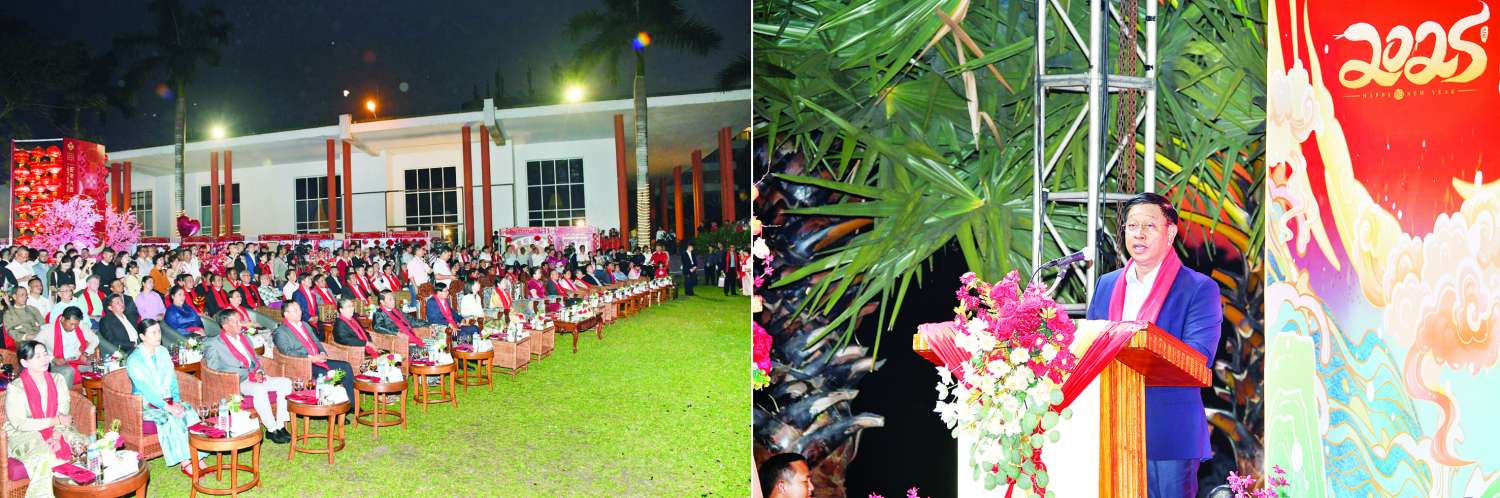 အခမ်းအနားကို တရုတ်ရိုးရာ ခြင်္သေ့တိုင်အက၊ ခြင်္သေ့နဂါးအကတို့ဖြင့် ကပြဖျော်ဖြေဖွင့်လှစ်ပြီး နိုင်ငံတော်စီမံအုပ်ချုပ်ရေးကောင်စီဥက္ကဋ္ဌ နိုင်ငံတော်ဝန်ကြီးချုပ် ဗိုလ်ချုပ်မှူးကြီး မင်းအောင်လှိုင်ကိုယ်စား ဒုတိယဝန်ကြီးချုပ်နှင့် နိုင်ငံတော်ဝန်ကြီးချုပ်ရုံး ပြည်ထောင်စုဝန်ကြီး ဗိုလ်ချုပ်ကြီး တင်အောင်စန်းက နှစ်သစ်ကူးအထိမ်းအမှတ် နှုတ်ခွန်းဆက်စကားပြောကြားရာတွင် မြန်မာနိုင်ငံနှင့် တရုတ်ပြည်သူ့သမ္မတနိုင်ငံတို့အကြား သံတမန်ဆက်ဆံရေး စတင်ထူထောင်ချိန်မှစ၍ နှစ်နိုင်ငံအကြား တည်ထောင်ခဲ့သည့် ဆွေမျိုးပေါက်ဖော် ချစ်ကြည်ရင်းနှီးသည့် ဆက်ဆံရေးသည် သက်တမ်းရှည်ကြာစွာ ဖြစ်ထွန်းခဲ့ပြီဖြစ်ပါကြောင်း။