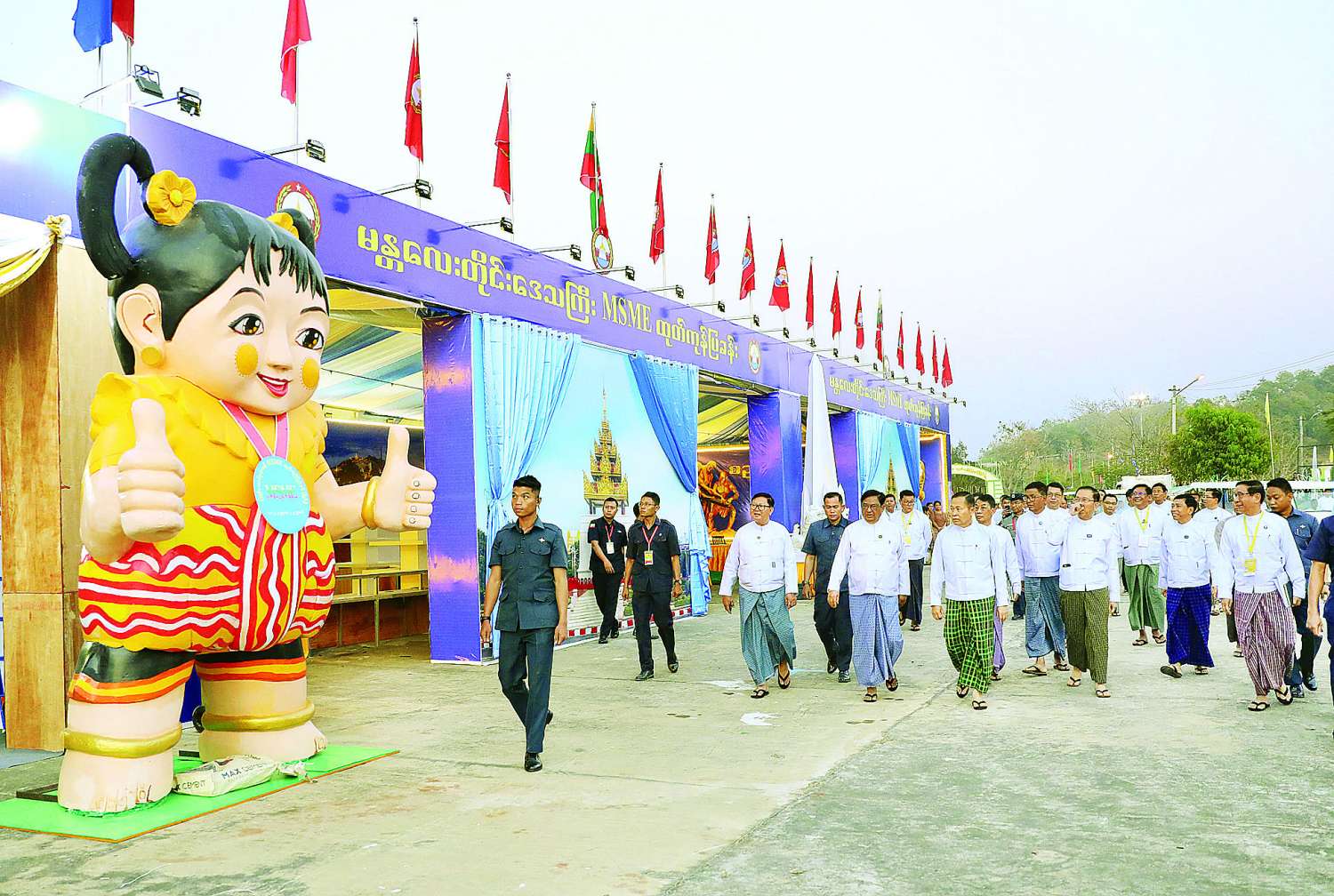 အစည်းအဝေးအပြီးတွင် လုပ်ငန်းကော်မတီဥက္ကဋ္ဌ နိုင်ငံတော်စီမံအုပ်ချုပ်ရေးကောင်စီ ဒုတိယဥက္ကဋ္ဌ ဒုတိယဝန်ကြီးချုပ် ဒုတိယဗိုလ်ချုပ်မှူးကြီး စိုးဝင်းသည် အဖွဲ့ဝင်များနှင့်အတူ ဝန်ကြီးဌာနပြခန်းများ၊ တိုင်းဒေသကြီး/ ပြည်နယ်ပြခန်းများ၊ တိုင်းရင်းသားရိုးရာအစားအစာရောင်းချဆိုင်ခန်းများ၊ လုပ်ငန်း/စီးပွားချိတ်ဆက်မှုများ (B2B)၊ နည်းပညာပြခန်းများ၊ ပြည်ပစက်ပစ္စည်းနှင့် ထုတ်ကုန်ပြခန်းများ၊ အသေးစားစက်မှုလက်မှုလုပ်ငန်းနှင့် ကုန်ထုတ်သမဝါယမပြခန်းများ အပြီးသတ်ဆောင်ရွက်နေမှုနှင့် ပြခန်းအလိုက် ခင်းကျင်းပြသရန် ပြင်ဆင်ဆောင်ရွက်နေမှုများကို လိုက်လံကြည့်ရှုအားပေးခဲ့ကြောင်း သတင်းရရှိသည်။