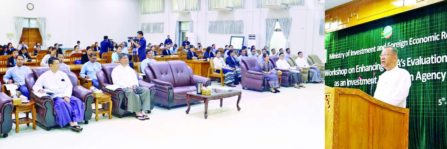 ရင်းနှီးမြှုပ်နှံမှုမြှင့်တင်ရေးဌာနတစ်ခုဖြစ်သည့် ရင်းနှီးမြှုပ်နှံမှုနှင့် ကုမ္ပဏီများညွှန်ကြားမှုဦးစီးဌာန၏ အကဲဖြတ်နိုင်မှုစွမ်းဆောင်ရည်ကို မြှင့်တင်ခြင်းအလုပ်ရုံဆွေးနွေးပွဲ ဖွင့်ပွဲအခမ်းအနားကို ယနေ့မွန်းလွဲပိုင်းတွင် ရင်းနှီးမြှုပ်နှံမှုနှင့် နိုင်ငံခြားစီးပွားဆက်သွယ်ရေးဝန်ကြီးဌာန ပြည်ထောင်စုဝန်ကြီရုံး ရုံးအမှတ် (၁)၌ Hybrid ပုံစံဖြင့် ကျင်းပသည်။