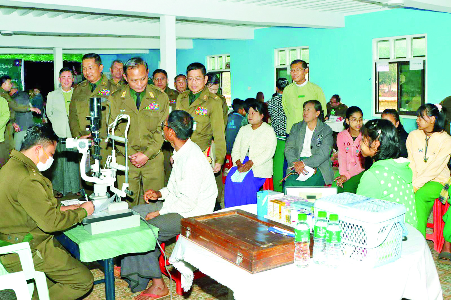 ထိုသို့ဆောင်ရွက်ပေးရာတွင် ဆေးကုသရေးအဖွဲ့က သံဃာတော်ခုနစ်ပါးနှင့် ဒေသခံပြည်သူ ၃၄၂ ဦးတို့အား သွေးတိုးရောဂါ၊ အဆစ်အမျက်ရောင်ရောဂါ၊ ဆီးချိုသွေးချိုရောဂါ၊ ကလေးရောဂါ၊ သားဖွား/ မီးယပ်ရောဂါ၊ အသက်ရှူလမ်းကြောင်းဆိုင်ရာရောဂါ၊ မျက်စိရောဂါ၊ သွားနှင့်ခံတွင်းရောဂါ၊ ခွဲစိတ်ကုသမှုဆိုင်ရာရောဂါ၊ အထွေထွေရောဂါတို့နှင့်ပတ်သက်၍ လိုအပ်သည့် ကျန်းမာရေးစစ်ဆေးကုသပေးခြင်း၊ ECG စက်၊ Ultrasound စက်တို့ဖြင့် ရောဂါရှာဖွေစမ်းသပ်စစ်ဆေးခြင်း၊ ကျန်းမာရေးဆိုင်ရာအသိပညာပေးဟောပြောခြင်းများ ဆောင်ရွက်ပေးပြီး ဆေးရုံတက်ရောက်ကုသရန်လိုအပ်သည့် လူနာများအား နယ်မြေခံတပ်မတော်ဆေးရုံသို့ တက်ရောက်ကုသနိုင်ရေး စီစဉ်ဆောင်ရွက်ပေးသည်။