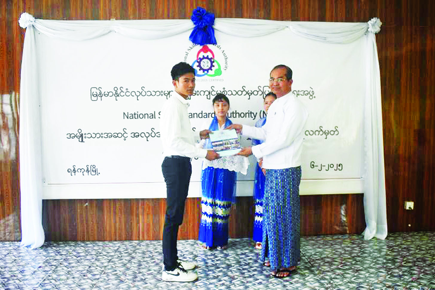 မြန်မာနိုင်ငံ လုပ်သားများကျွမ်းကျင်မှုစံ သတ်မှတ်ပြဋ္ဌာန်းရေးအဖွဲ့ (NSSA) ၏ အမျိုးသားအဆင့် အလုပ်အကိုင်ဆိုင်ရာ ကျွမ်းကျင်မှုအသိအမှတ်ပြု လက်မှတ်ပေးအပ်ပွဲအခမ်းအနားကို ယနေ့နံနက်ပိုင်းတွင် ရန်ကုန်တိုင်းဒေသကြီး ကျွမ်းကျင်မှုလေ့ကျင့်ရေးသင်တန်းကျောင်း (ရန်ကင်း) ၌ ကျင်းပသည်။