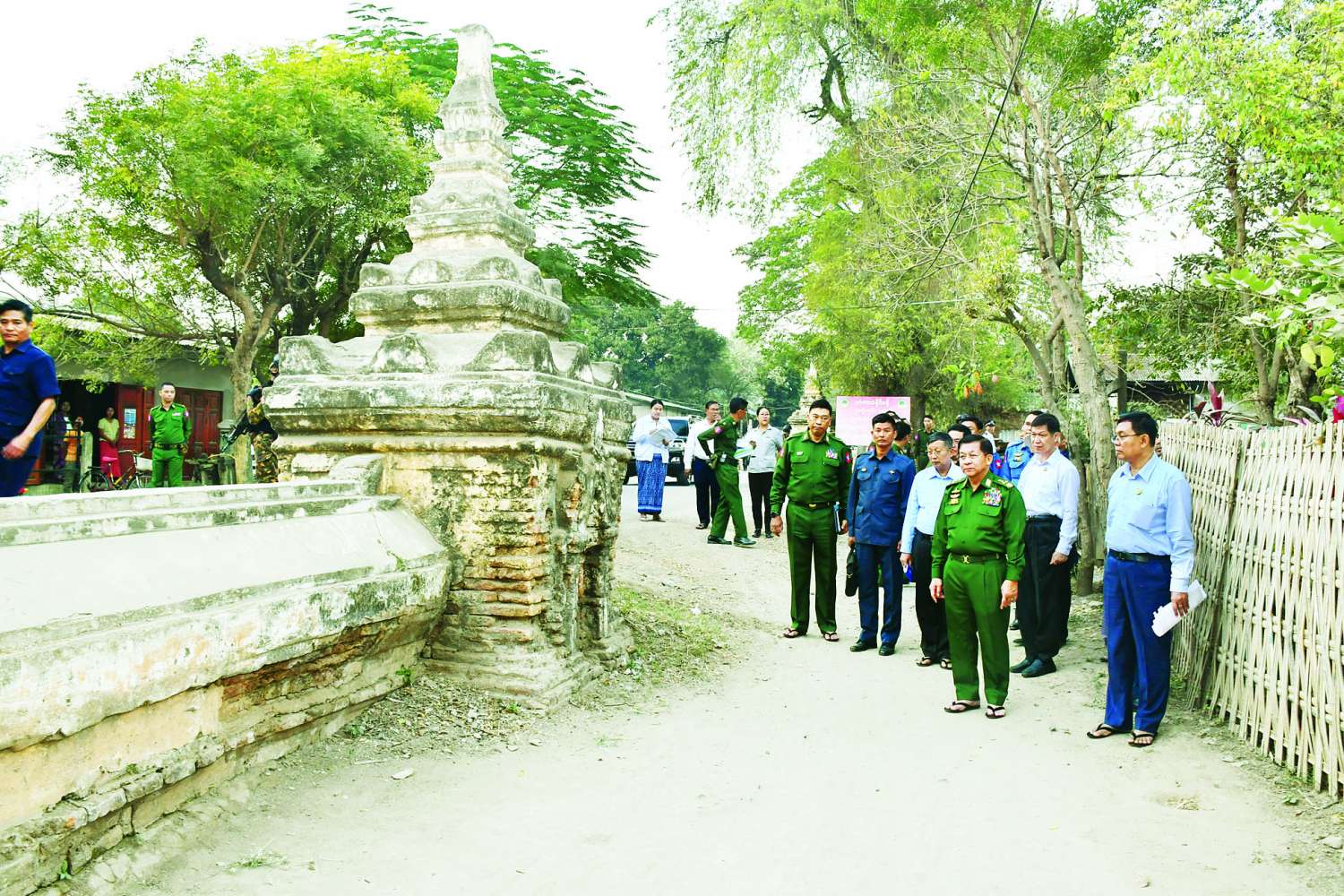 ထို့နောက် နိုင်ငံတော်စီမံအုပ်ချုပ်ရေးကောင်စီဥက္ကဋ္ဌ နိုင်ငံတော်ဝန်ကြီးချုပ်နှင့် အဖွဲ့ဝင်များသည် အင်းဝမြို့ဟောင်းရှိ မြို့ရိုးနှင့် ကျုံးတို့အား ကြည့်ရှုစစ်ဆေးပြီး မြို့နေရာနှင့် မြို့ရိုးတို့အား စဉ်ဆက်မပြတ် ထိန်းသိမ်းစောင့်ရှောက်မှုများ ပြုလုပ်ရေးနှင့် ကျုံးအား ရှေးမူမပျက်မွမ်းမံ၍ ပြန်လည်ထိန်းသိမ်းရန် လိုအပ်မှုအခြေအနေများနှင့်ပတ်သက်၍ လမ်းညွှန်မှာကြားသည်။