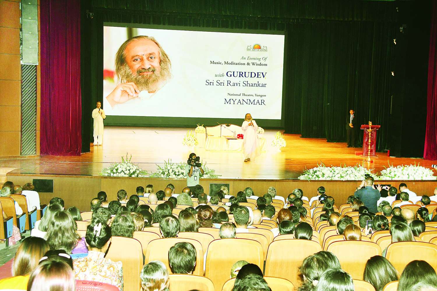 ရန်ကုန်မြို့၌ ရောက်ရှိနေသည့် အိန္ဒိယနိုင်ငံမှ လူသားချင်းစာနာထောက်ထားမှုခေါင်းဆောင်နှင့် ငြိမ်းချမ်းရေးသံတမန် ဂုရုကြီး Sri Sri Shankar သည် ယနေ့နံနက်ပိုင်းတွင် ရန်ကုန်မြို့ နတ်မောက်လမ်းရှိ Chatirium Hotel ၊ The Grand Ballroom ၌ စီးပွားရေးလုပ်ငန်းရှင်များ၊ ကုမ္ပဏီလုပ်ငန်းရှင်များနှင့်တွေ့ဆုံပြီး စိတ်အေးချမ်းမှုကျင့်စဉ်နှင့်စပ်လျဉ်း၍ ဆွေးနွေးဟောပြောသည်။