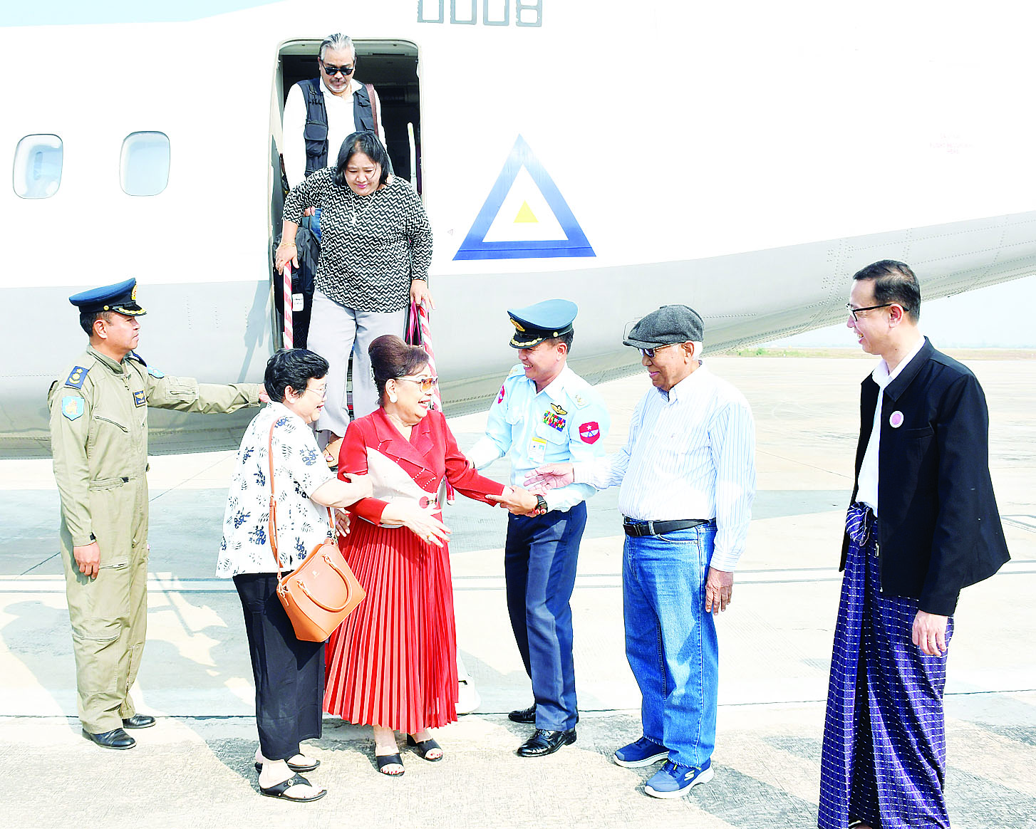 အဆိုပါအခမ်းအနားတက်ရောက်ရန် သက်ကြီးအနုပညာရှင် ၂၇ ဦးတို့သည် ယနေ့နံနက်ပိုင်းတွင် နိုင်ငံတော်၏ စီစဉ်ပေးမှုဖြင့် ရန်ကုန်မြို့မှ တပ်မတော်လေယာဉ်ဖြင့် ထွက်ခွာလာကြပြီး နေပြည်တော်သို့ ရောက်ရှိကြရာ တာဝန်ရှိသူများက နေပြည်တော်လေဆိပ်၌ ကြိုဆိုနှုတ်ဆက်ကြပြီး(အောက်ပုံ)ခေတ္တတည်းခိုနေထိုင်ကြမည့် နေရာများသို့ လိုက်လံပို့ဆောင်ပေးကြသည်။