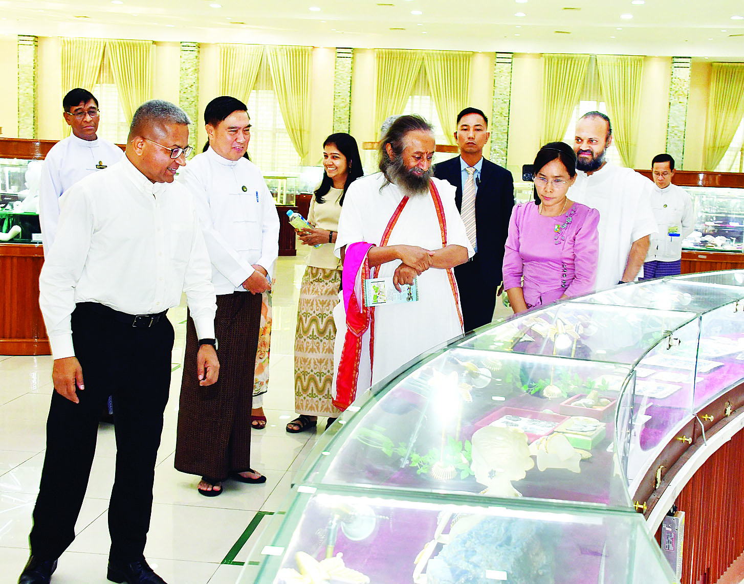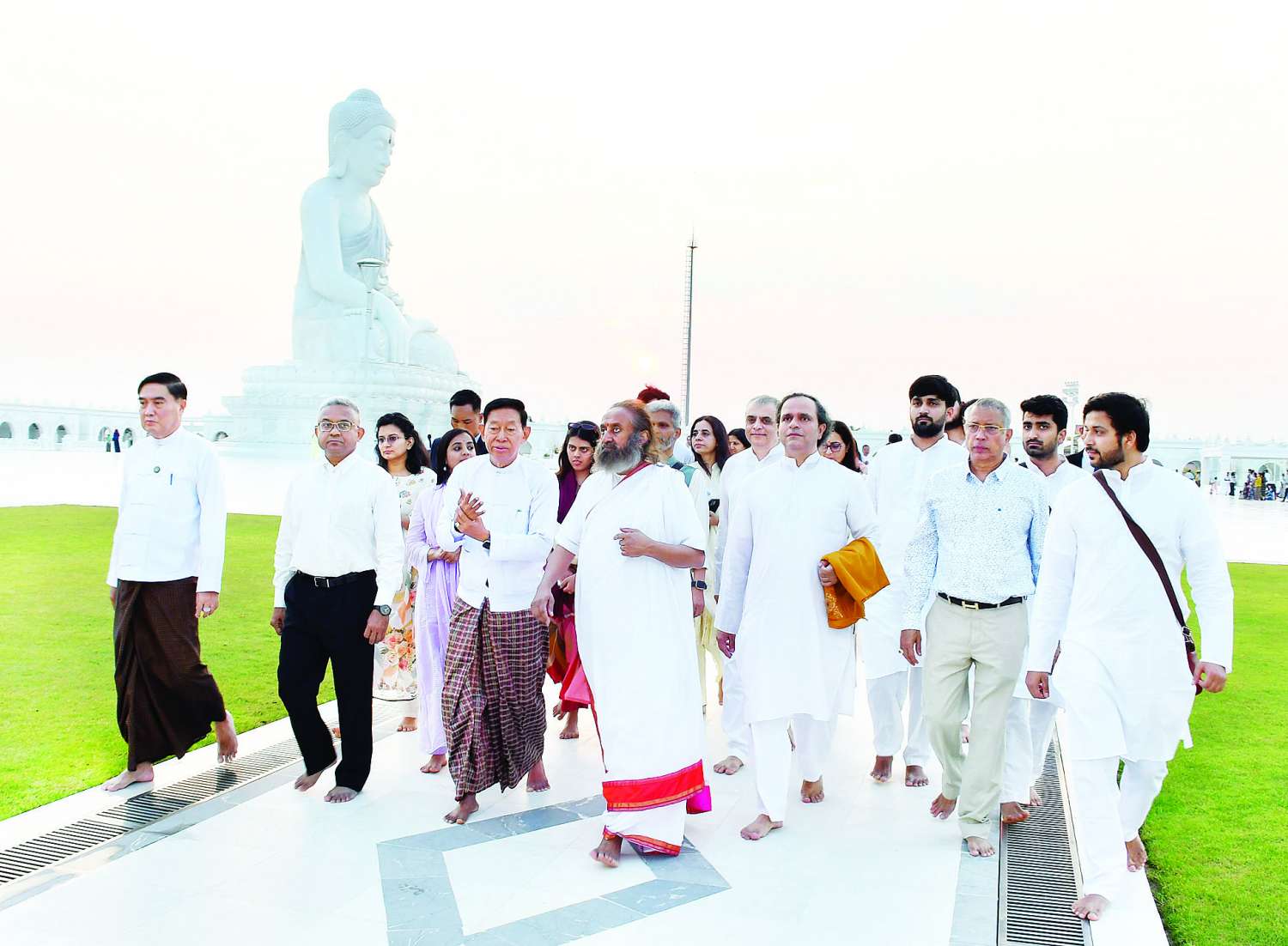 အိန္ဒိယနိုင်ငံမှ လူသားချင်းစာနာထောက်ထားမှုခေါင်းဆောင်နှင့် ငြိမ်းချမ်းရေးသံတမန်ကြီး Gurudev Sri Sri Ravi Shankar ဦးဆောင်သော ကိုယ်စားလှယ်အဖွဲ့ နေပြည်တော်ရှိ အထင်ကရနေရာများ ကြည့်ရှုလေ့လာ