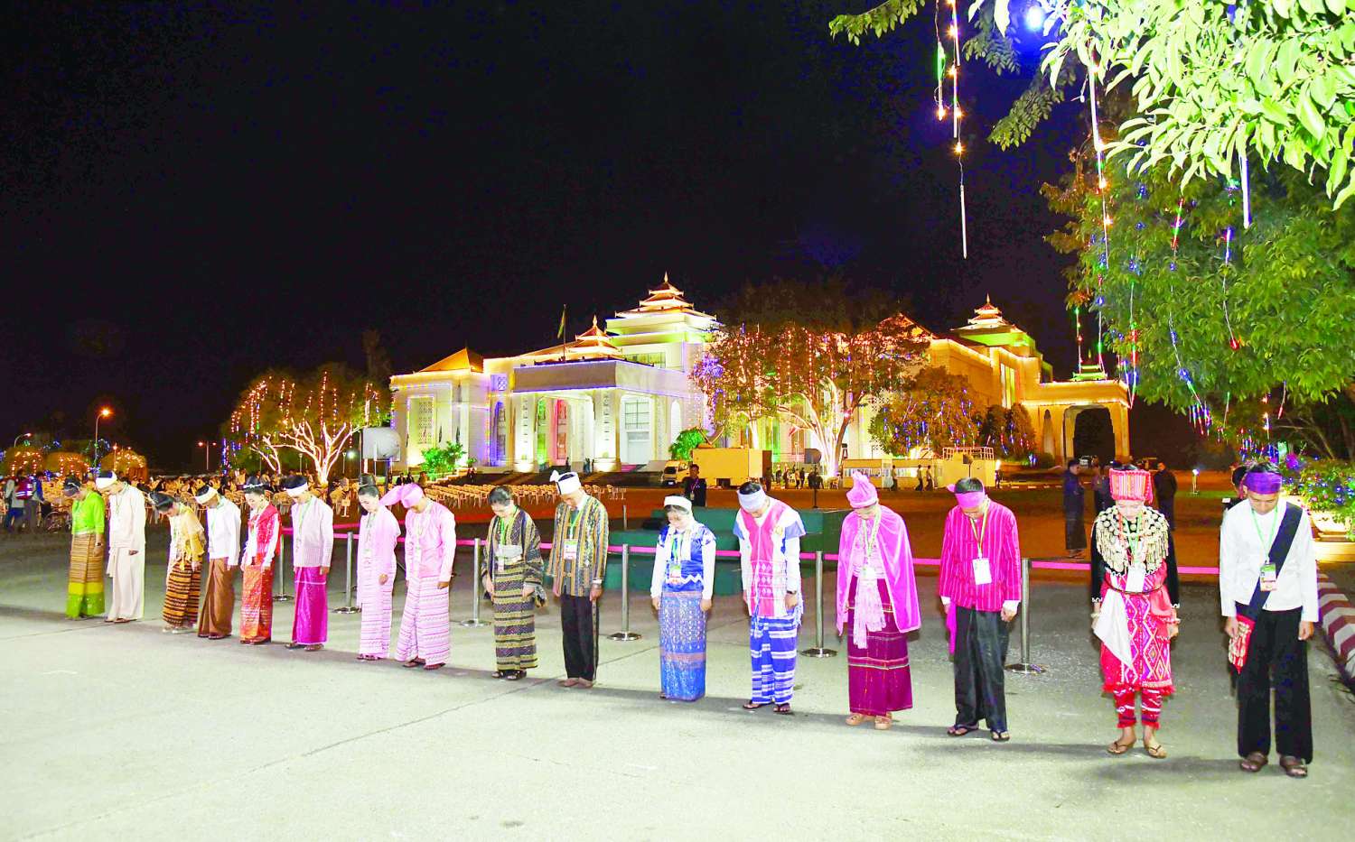 အခမ်းအနားသို့ ပြည်ထောင်စုဝန်ကြီးများ၊ ပြည်ထောင်စုစာရင်းစစ်ချုပ်၊ ပြည်ထောင်စုရာထူးဝန်အဖွဲ့ဥက္ကဋ္ဌ၊ နေပြည်တော်ကောင်စီဥက္ကဋ္ဌ၊ မြန်မာနိုင်ငံဗဟိုဘဏ်ဥက္ကဋ္ဌ၊ အဂတိလိုက်စားမှုတိုက်ဖျက်ရေးကော်မရှင်ဥက္ကဋ္ဌ၊ မြန်မာနိုင်ငံအမျိုးသား လူ့အခွင့်အရေးကော်မရှင်ဥက္ကဋ္ဌ၊ တပ်မတော်အရာရှိကြီးများ၊ ပြည်ထောင်စုတရားလွှတ်တော်ချုပ်မှ တရားသူကြီးများ၊ မြန်မာနိုင်ငံဖွဲ့စည်းပုံအခြေခံဥပဒေဆိုင်ရာခုံရုံးအဖွဲ့ဝင်များ၊ ပြည်ထောင်စုရွေးကောက်ပွဲကော်မရှင်အဖွဲ့ဝင်များ၊ ဒုတိယဝန်ကြီးများ၊ အဂတိလိုက်စားမှု တိုက်ဖျက်ရေးကော်မရှင်အဖွဲ့ဝင်များ၊ မြန်မာနိုင်ငံအမျိုးသားလူ့အခွင့်အရေးကော်မရှင်အဖွဲ့ဝင်များ၊ နေပြည်တော်ကောင်စီဝင်များ၊ ဌာနဆိုင်ရာအကြီးအကဲများ၊ ဝန်ကြီးဌာနများမှဝန်ထမ်းများ၊ တိုင်းရင်းသားရိုးရာယဉ်ကျေးမှုအဖွဲ့များ၊ တိုင်းရင်းသား၊ တိုင်းရင်းသူကိုယ်စားလှယ်များနှင့် ဖိတ်ကြားထားသူများ တက်ရောက်ခဲ့ကြကြောင်း သတင်းရရှိသည်။