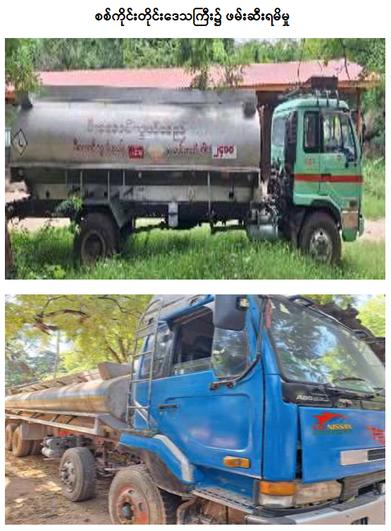 ထို့အပြင် စစ်ကိုင်းတိုင်းဒေသကြီး တရားမဝင်ကုန်သွယ်မှုတိုက်ဖျက်ရေးအထူးအဖွဲ့၏ စီမံခန့်ခွဲမှုဖြင့် တာဝန်ကျပူးပေါင်းအဖွဲ့များက စစ်ဆေးမှုများ ဆောင်ရွက်ခဲ့ရာ ဖေဖော်ဝါရီလ ၁၁ ရက်တွင် စစ်ကိုင်းမြို့၊ ရတနာပုံတံတားပူးပေါင်းစစ်ဆေးရေးဂိတ်၌ လိုင်စင်မဲ့ Toyota Fortuner မော်တော်ယာဉ် (၁)စီး (ခန့်မှန်းတန်ဖိုးငွေကျပ် ၄၅,၀၀၀,၀၀၀) ကိုလည်းကောင်း၊ ဖေဖော်ဝါရီလ ၁၂ ရက်တွင် ယင်းမာပင်မြို့နယ်အတွင်း၌ လိုင်စင်မဲ့မော်တော်ယာဉ် (၃) စီးနှင့် ဆီဘောက်ဆာယာဉ် (၁)စီး (ခန့်မှန်းတန်ဖိုးငွေကျပ် ၂၄၉,၅၀၀,၀၀၀) ကိုလည်းကောင်း၊ စုစုပေါင်း (ခန့်မှန်းတန်ဖိုးငွေကျပ် ၂၉၄,၅၀၀,၀၀၀) ကို ဖမ်းဆီးရမိခဲ့ပြီး ပို့ကုန်သွင်းကုန်ဥပဒေနှင့်အညီ အရေးယူဆောင်ရွက်လျက်ရှိပါသည်။