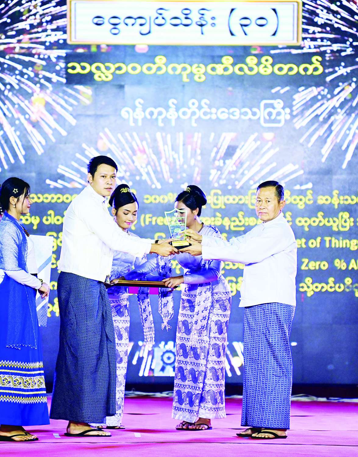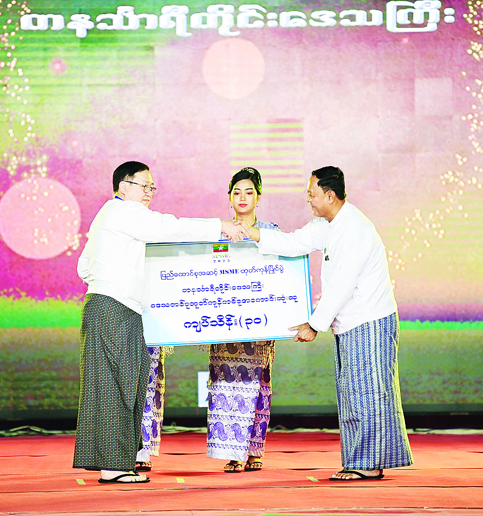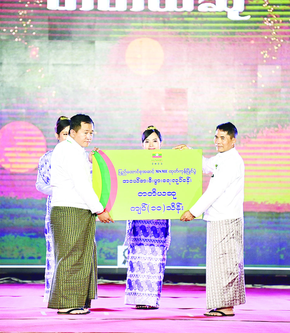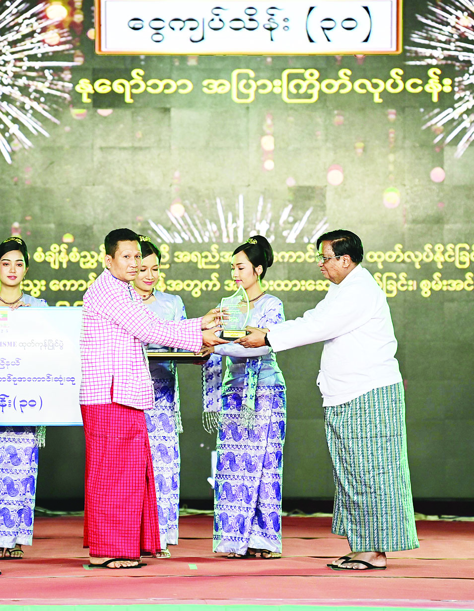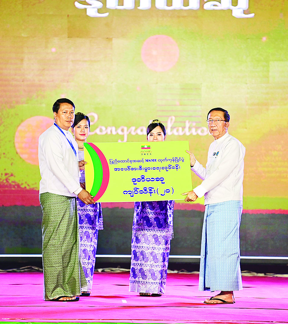 ဦးစွာ နေပြည်တော်ကောင်စီဥက္ကဋ္ဌ ဦးသန်းထွန်းဦးက အသေးစားစက်မှုလက်မှုလုပ်ငန်း (စားသောက်ကုန်၊ လူသုံးကုန်၊ ရက်ကန်းထည်၊ လက်မှုထည်) စံပြထုတ်ကုန် အထူးဆုရရှိသူ (၁၂) ဦးတို့အားလည်းကောင်း၊ သိပ္ပံနှင့်နည်းပညာဝန်ကြီးဌာန ပြည်ထောင်စုဝန်ကြီး ဒေါက်တာမျိုးသိန်းကျော်က ကုန်ထုတ်သမဝါယမအသင်း စွမ်းဆောင်ရည်အထူးဆုရရှိသူ (၅) ဦးနှင့် အသေးစား (Micro) စီးပွားရေးလုပ်ငန်းများ အထူးဆုရရှိသူ (၅) ဦးတို့အားလည်းကောင်း ဆုများပေးအပ်ချီးမြှင့်ကြသည်။