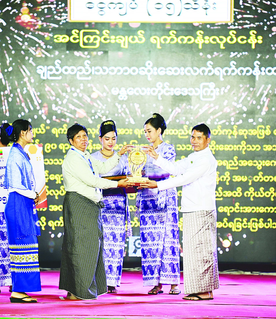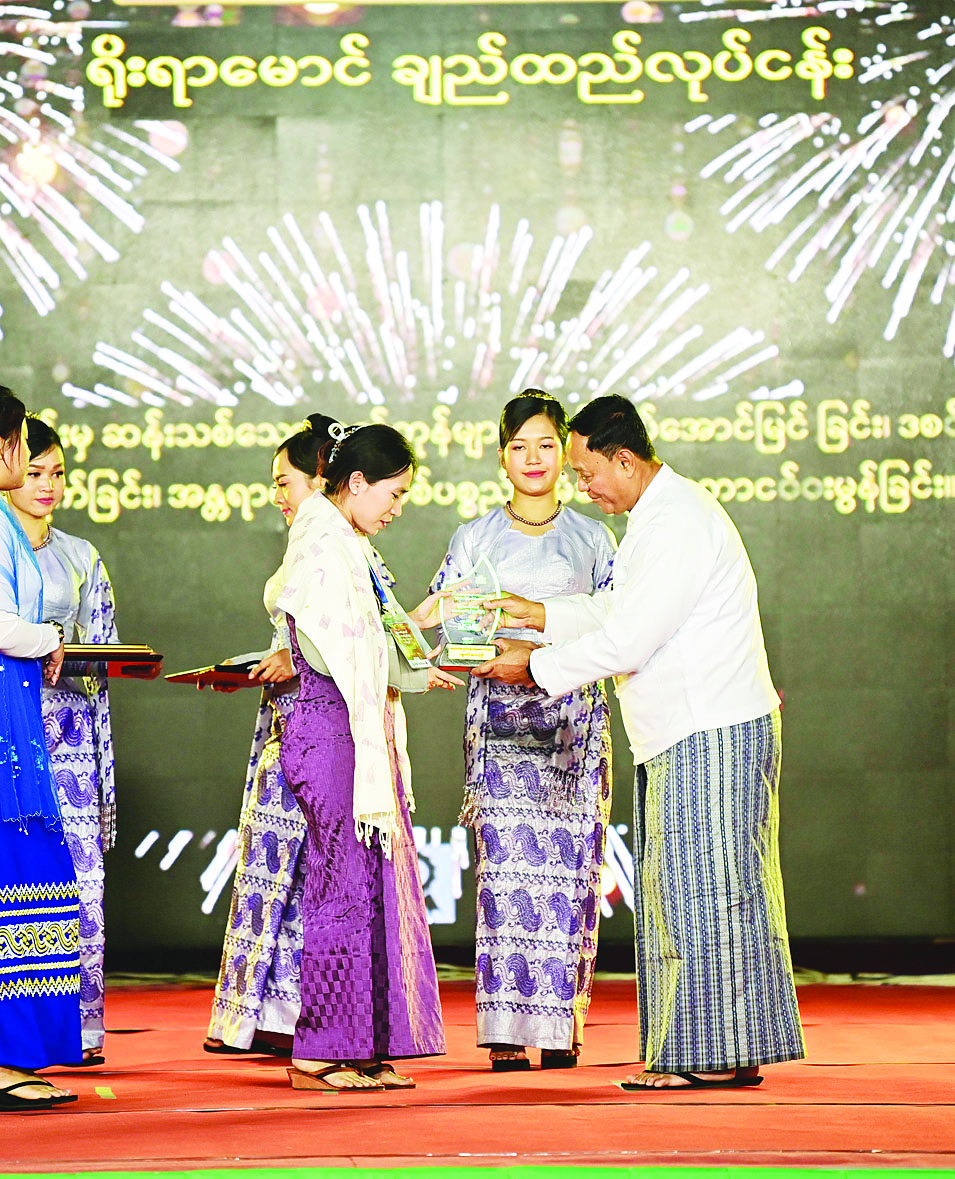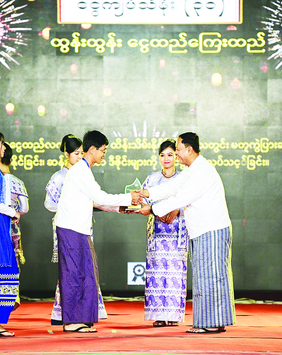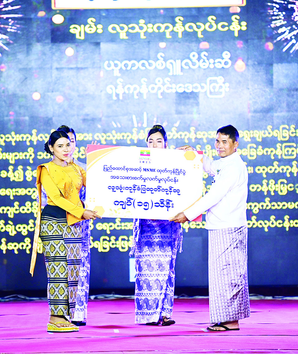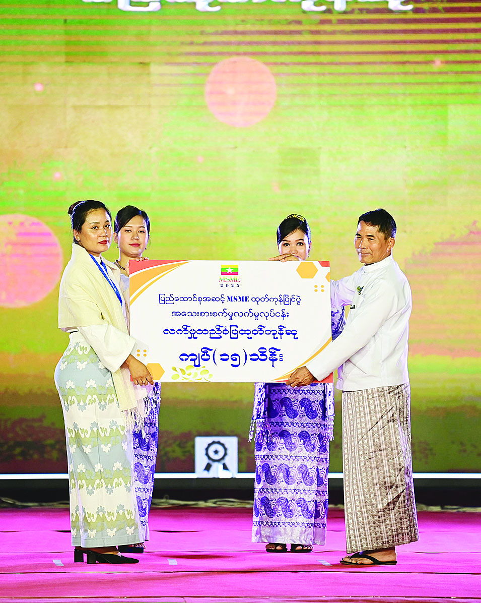 ဦးစွာ နေပြည်တော်ကောင်စီဥက္ကဋ္ဌ ဦးသန်းထွန်းဦးက အသေးစားစက်မှုလက်မှုလုပ်ငန်း (စားသောက်ကုန်၊ လူသုံးကုန်၊ ရက်ကန်းထည်၊ လက်မှုထည်) စံပြထုတ်ကုန် အထူးဆုရရှိသူ (၁၂) ဦးတို့အားလည်းကောင်း၊ သိပ္ပံနှင့်နည်းပညာဝန်ကြီးဌာန ပြည်ထောင်စုဝန်ကြီး ဒေါက်တာမျိုးသိန်းကျော်က ကုန်ထုတ်သမဝါယမအသင်း စွမ်းဆောင်ရည်အထူးဆုရရှိသူ (၅) ဦးနှင့် အသေးစား (Micro) စီးပွားရေးလုပ်ငန်းများ အထူးဆုရရှိသူ (၅) ဦးတို့အားလည်းကောင်း ဆုများပေးအပ်ချီးမြှင့်ကြသည်။