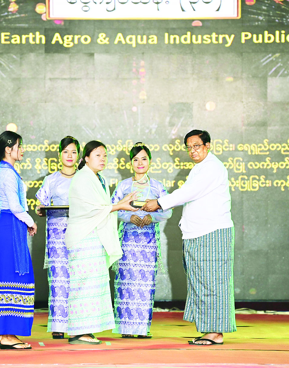 ဆက်လက်၍ စီမံကိန်းနှင့်ဘဏ္ဍာရေးဝန်ကြီးဌာန ပြည်ထောင်စုဝန်ကြီး ဦးဝင်းရှိန်က အသေးစား၊ အငယ်စား၊ အလတ်စားစီးပွားရေးလုပ်ငန်းများနှင့် ကုန်ထုတ်သမဝါယမ အသင်းစွမ်းဆောင်ရည် ဒုတိယဆုရရှိကြသူများဖြစ်သည့် အသေးစားထုတ်ကုန်လုပ်ငန်းတွင် ဧရာဝတီတိုင်းဒေသကြီး “M-Treasure” ကွမ်းသီးဖက်ထုတ်ကုန်လုပ်ငန်း မှ ဒေါ်မာလာစန်း၊ အငယ်စားထုတ်ကုန်လုပ်ငန်းတွင် ရန်ကုန်တိုင်းဒေသကြီး “MG Myanmar Gasket" အမျိုးမျိုးထုတ်ကုန်လုပ်ငန်းမှ ဦးဇင်မျိုးထိုက်၊ အလတ်စားစီးပွားရေးလုပ်ငန်းတွင် ပြည်ထောင်စုနယ်မြေနေပြည်တော် “မြန်မာရွှေသစ်သီးဝလံ” ကုမ္ပဏီလီမိတက်မှ ဒေါ်လဲ့လဲ့ဦးနှင့် ကုန်ထုတ်သမဝါယမအသင်းစွမ်းဆောင်ရည်ဆုရရှိသည့် ရန်ကုန်တိုင်းဒေသကြီး၊ “သီရိစန္ဒာ” အထည်ချုပ်နှင့်အထွေထွေရောင်းဝယ်ရေးသမဝါယမအသင်းမှ တာဝန်ရှိသူတို့အား ဂုဏ်ပြုဆုတံဆိပ်၊ ဂုဏ်ပြုမှတ်တမ်းလွှာနှင့် ဂုဏ်ပြုဆုငွေများပေးအပ်ချီးမြှင့်သည်။