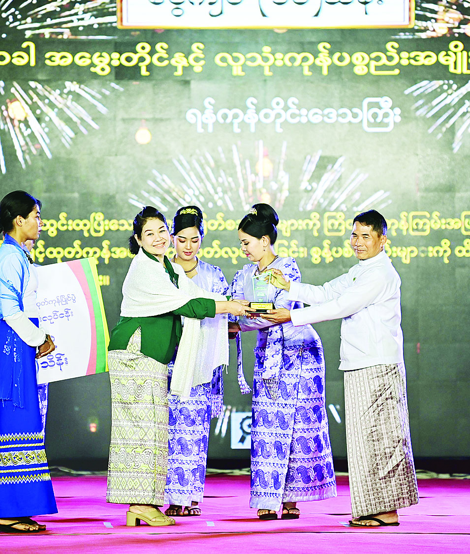 ယင်းနောက် သမဝါယမနှင့်ကျေးလက်ဖွံ့ဖြိုးရေးဝန်ကြီးဌာန ပြည်ထောင်စုဝန်ကြီး ဦးလှမိုးက ဒေသတစ်ခုထုတ်ကုန်တစ်ခု (OROP) အကောင်းဆုံးရရှိကြသည့် ကချင်ပြည်နယ်၊ ကယားပြည်နယ်၊ ကရင်ပြည်နယ်၊ ချင်းပြည်နယ်၊ စစ်ကိုင်းတိုင်းဒေသကြီး၊ တနင်္သာရီတိုင်းဒေသကြီးနှင့် ပဲခူးတိုင်းဒေသကြီးတို့မှ ပြိုင်ပွဲဝင်များအားလည်းကောင်း၊ စိုက်ပျိုးရေး၊ မွေးမြူရေးနှင့် ဆည်မြောင်းဝန်ကြီးဌာန ပြည်ထောင်စုဝန်ကြီး ဦးမင်းနောင်က အသေးစားစက်မှုလက်မှုလုပ်ငန်း (စားသောက်ကုန်၊ လူသုံးကုန်၊ ရက်ကန်းထည်၊ လက်မှုထည်) စံပြထုတ်ကုန်ဆုရရှိသူ (၄) ဦးနှင့် အသေးစား၊ အငယ်စား၊ အလတ်စား စီးပွားရေးလုပ်ငန်းများနှင့် ကုန်ထုတ်သမဝါယမအသင်းစွမ်းဆောင်ရည် တတိယဆုရရှိသူများဖြစ်ကြသည့် အသေးစား ထုတ်ကုန်လုပ်ငန်းတွင် ရန်ကုန်တိုင်းဒေသကြီး “ဝိသာခါ” အမွေးတိုင်နှင့် လူသုံးကုန်ပစ္စည်း အမျိုးမျိုးလုပ်ငန်းမှ ဒေါ်ဖြူဖြူဥ၊ အငယ်စားထုတ်ကုန်လုပ်ငန်းတွင် မန္တလေးတိုင်းဒေသကြီး “HMG” မော်တော်ယာဉ်လေစစ်ဘူးလုပ်ငန်းမှ ဦးလှိုင်မိုး၊ အလတ်စားထုတ်ကုန်လုပ်ငန်းတွင် တနင်္သာရီတိုင်းဒေသကြီး “မြန်မာအတ္တလန်တစ်” ကုမ္ပဏီလီမိတက်မှ ဦးစိုးမိုးနိုင်၊ သမဝါယမ အသင်းစွမ်းဆောင်ရည်ဆုရရှိသည့် ပြည်ထောင်စုနယ်မြေနေပြည်တော် “သားတင်ဦး” အထွေထွေစီးပွားရေးလုပ်ငန်းသမဝါယမအသင်းမှ တာဝန်ရှိသူတို့အားလည်းကောင်း ဂုဏ်ပြုဆုတံဆိပ်၊ ဂုဏ်ပြုမှတ်တမ်းလွှာနှင့် ဂုဏ်ပြုဆုငွေများ ပေးအပ်ချီးမြှင့်ကြသည်။