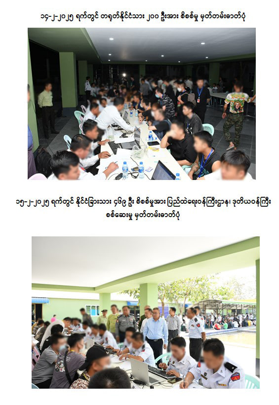ထိုင်းနိုင်ငံအပါအဝင် အိမ်နီးချင်းနိုင်ငံအချို့ကို တစ်ဆင့်ခံဖြတ်သန်း၍ မြန်မာနိုင်ငံအတွင်းသို့ နယ်စပ်လမ်းကြောင်းများမှတစ်ဆင့် တရားမဝင် ဝင်ရောက်လာပြီး ကရင်ပြည်နယ် မြဝတီမြို့- ရွှေကုက္ကိုလ်နှင့် KK Park နယ်မြေများတွင် တရားမဝင် Online လောင်းကစားမှုများ၊ Online လိမ်လည်မှုများ၊ ဒုစရိုက်မှုများ ကျူးလွန်ခဲ့ကြသူများကို စစ်ဆေးဖော်ထုတ်လျက်ရှိရာ ဇန်နဝါရီ ၃၀ ရက်မှ ဖေဖော်ဝါရီ ၁၅ ရက်အထိပြည်ပနိုင်ငံသား ၇၉၉ ဦးကို ထိန်းသိမ်းနိုင်ခဲ့ကြောင်း သိရသည်။